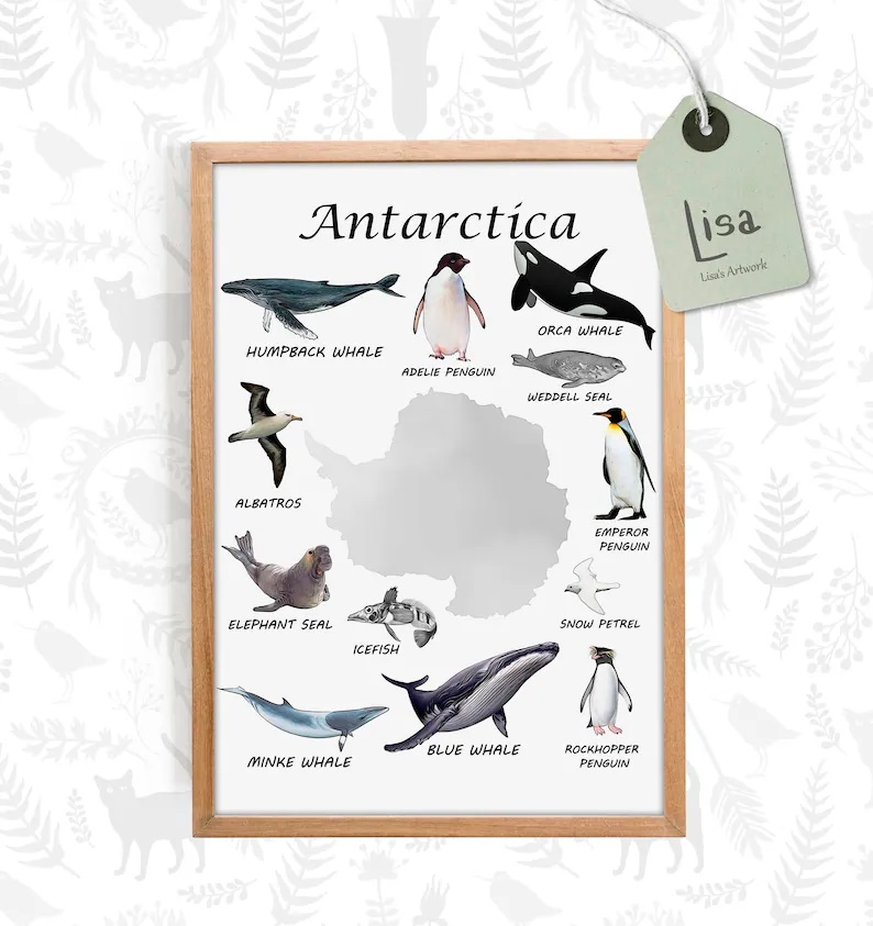 Antarctica continent montessori classroom posters, classroom decor, playroom decor, montessori printable, homeschool, animal art print