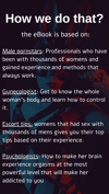 - escort tips: womens that had sex with thousands of mens EACH, gives you their top tips based on their experience.
