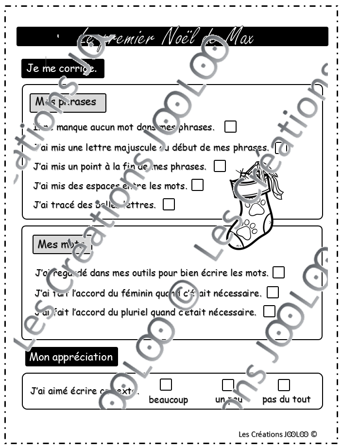 - 1 feuille pour aider l'élève à faire l'auto-correction de son texte