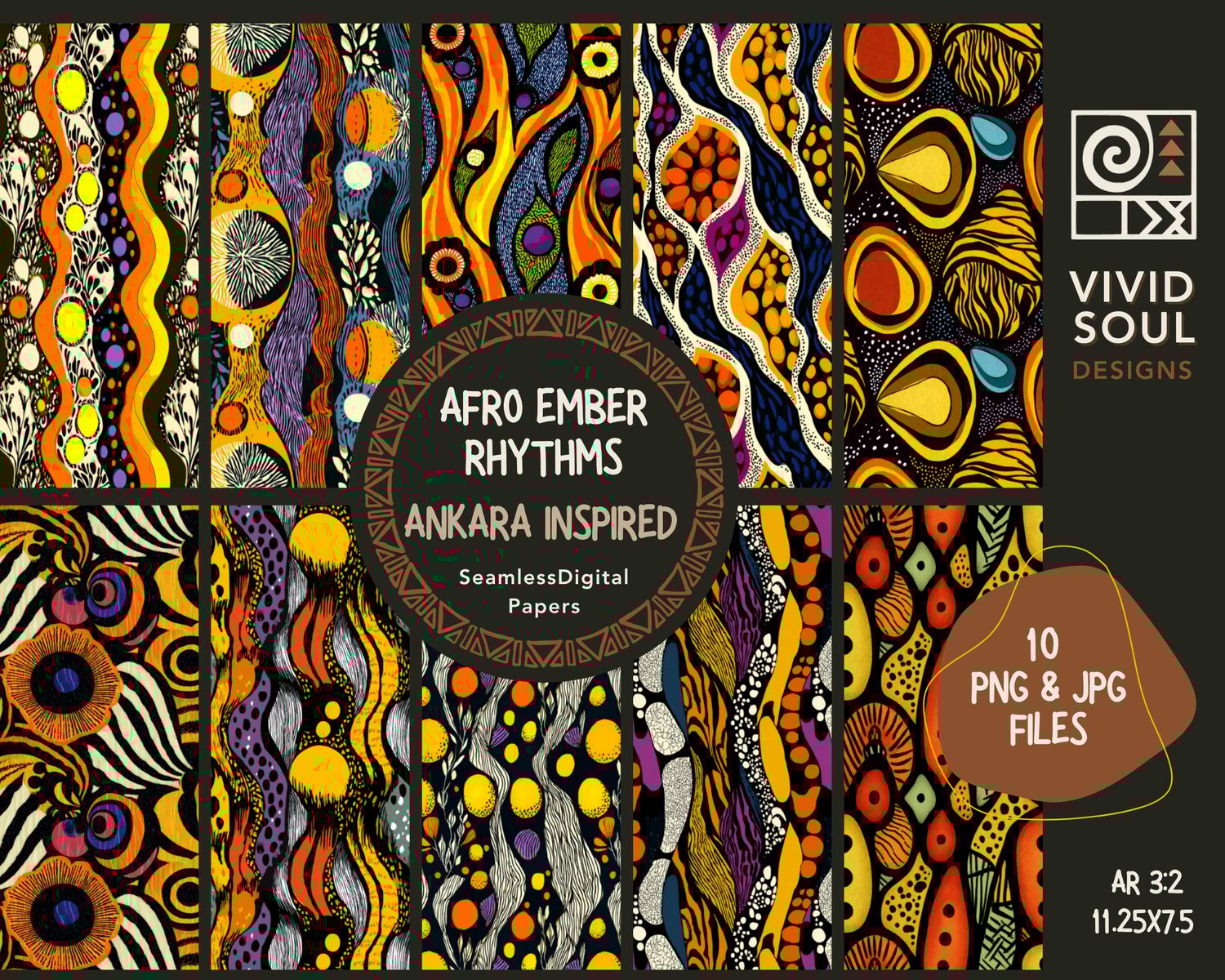 Afro Ember Rhythms – 10 Seamless Digital Ankara-Inspired Patterns