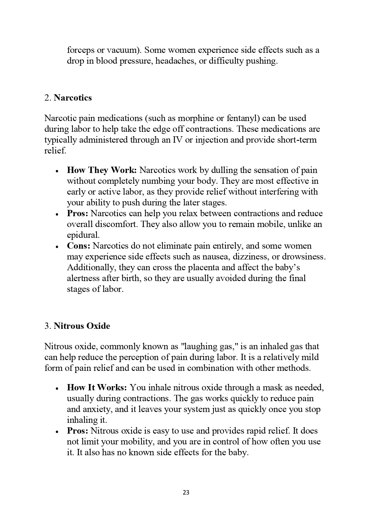 - Pain Management: Gain insights into both non-medical and medical pain relief options to find the approach that best suits your needs, from breathing techniques to epidurals.