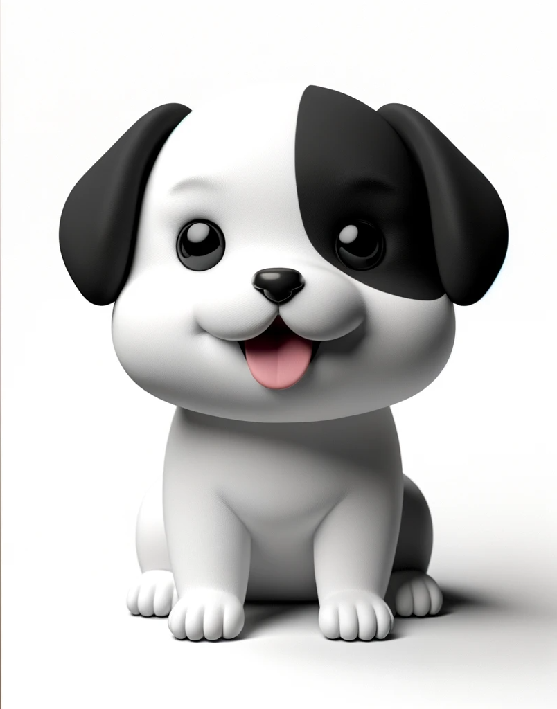 - Unique 3D dog design, capturing the delicate hues of white and black against a pristine white backdrop.