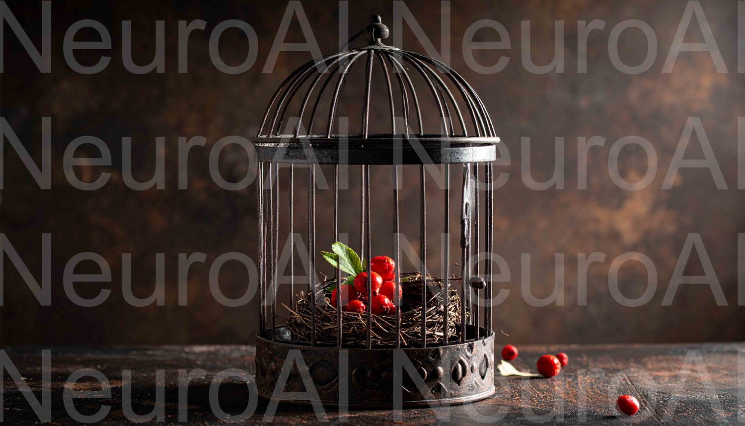Elegant birdcage with rowan berries for autumn decor
