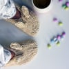 Estas modernas zapatillas de conejo harán que todos en tu familia se sientan lindos y cómodos al instante. Parten en el talón con el montado circular de Emily Ocker, luego aumentos en el talón, después creas la división del tobillo, y finalmente unes y disminuyes para los ortejos. Adórnalas tejiendo unas orejas y con un pompom de cola.