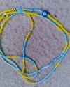 Handcrafted with intention, these waist beads honor the divine feminine energies of Yemaya and Oshun, blending their sacred colors into a stunning strand of spiritual protection and empowerment.