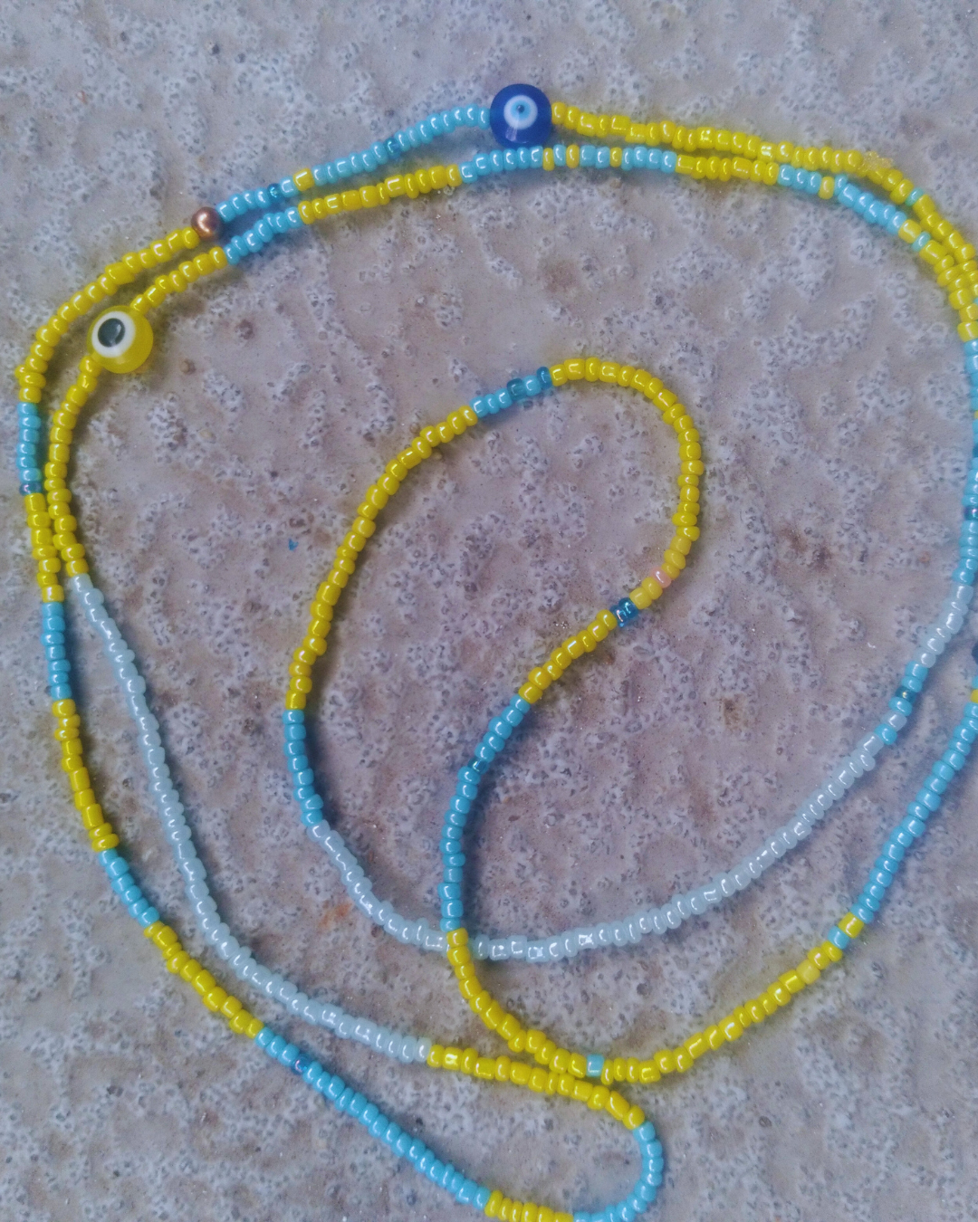 - Blue Evil Eye bead & Yellow Evil Eye bead for protection