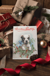 Vintage Christmas Postcard - Adorable Puppy with Holly and Christmas Greetings