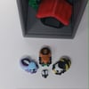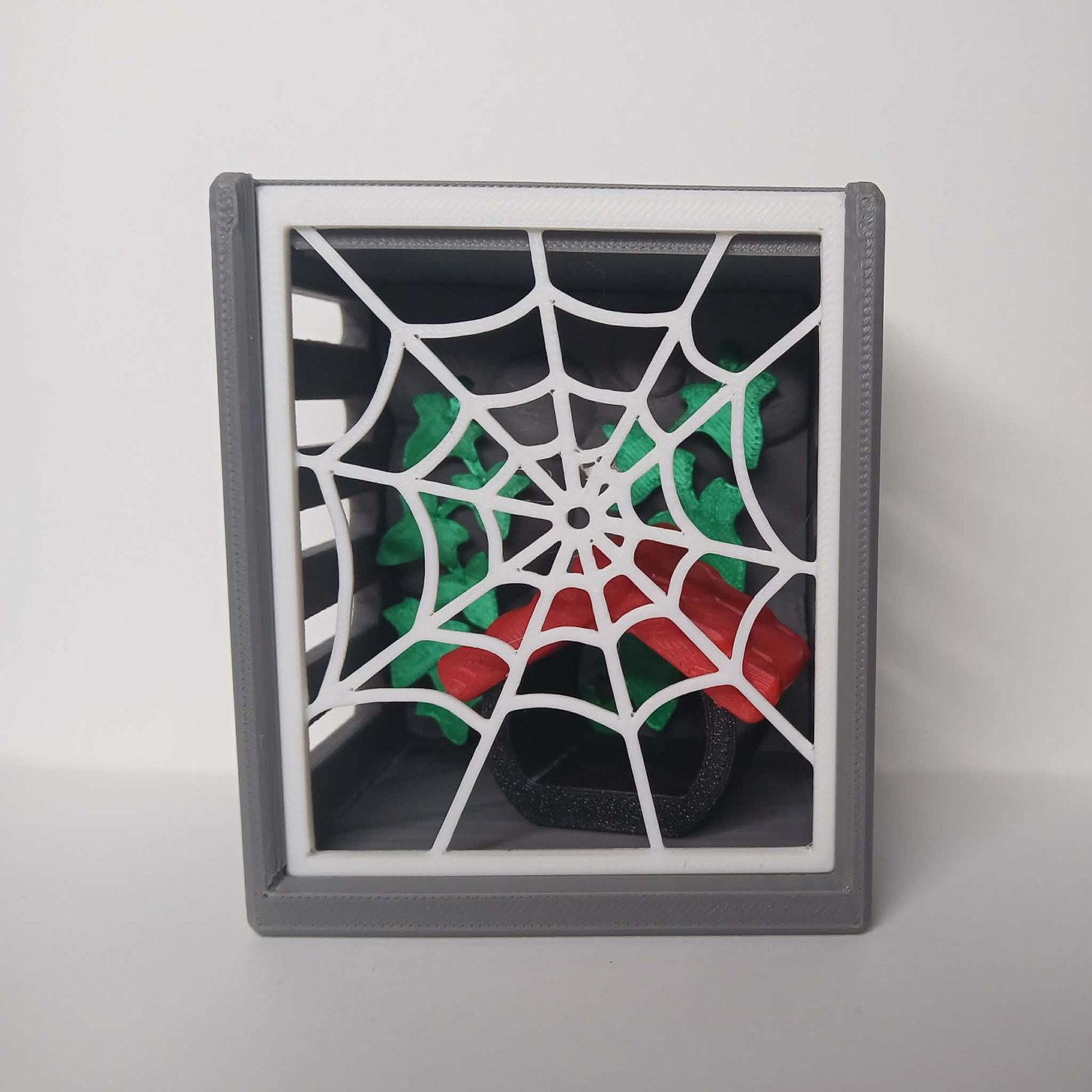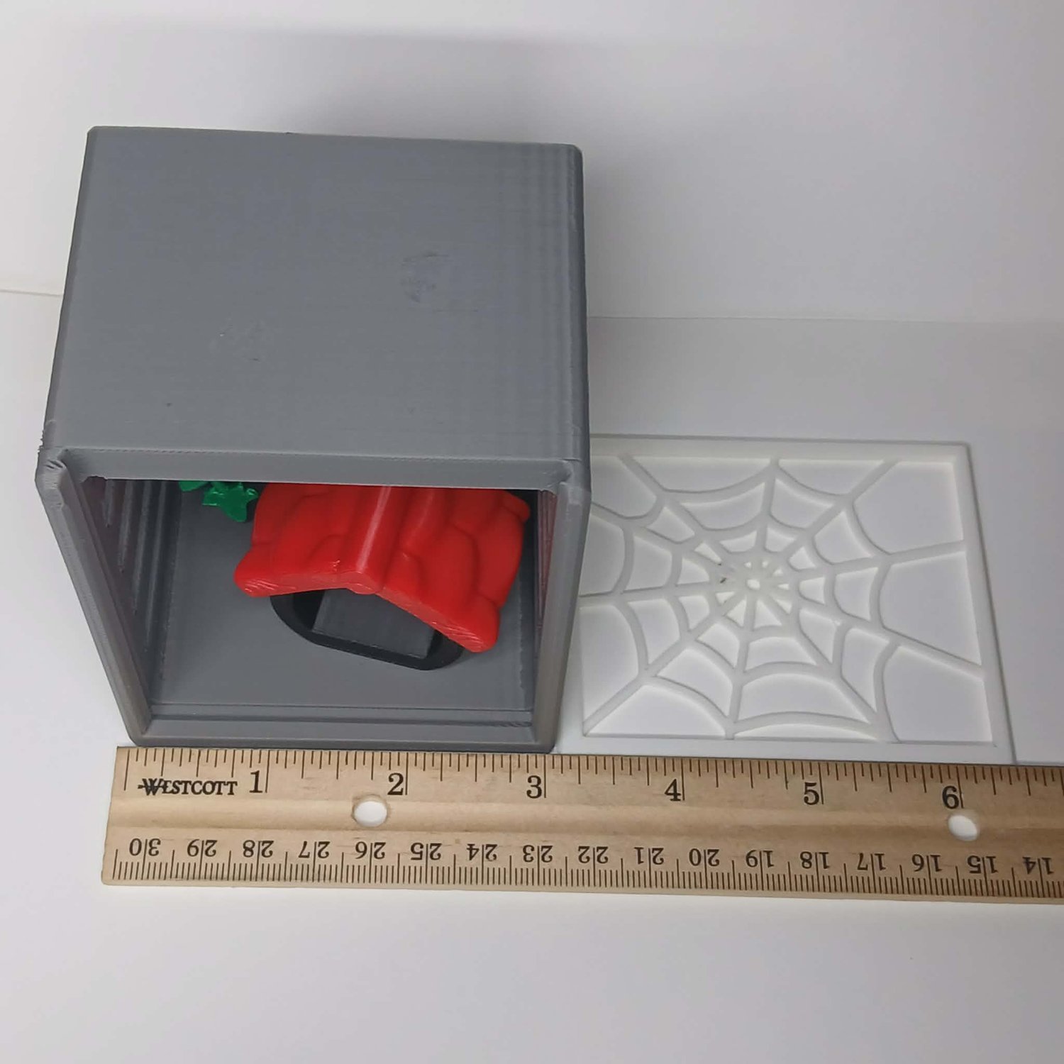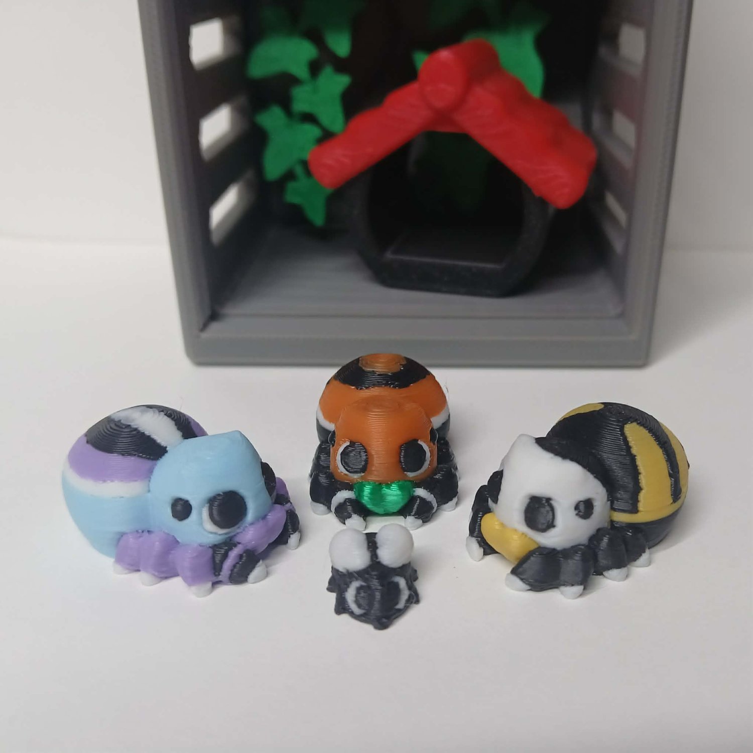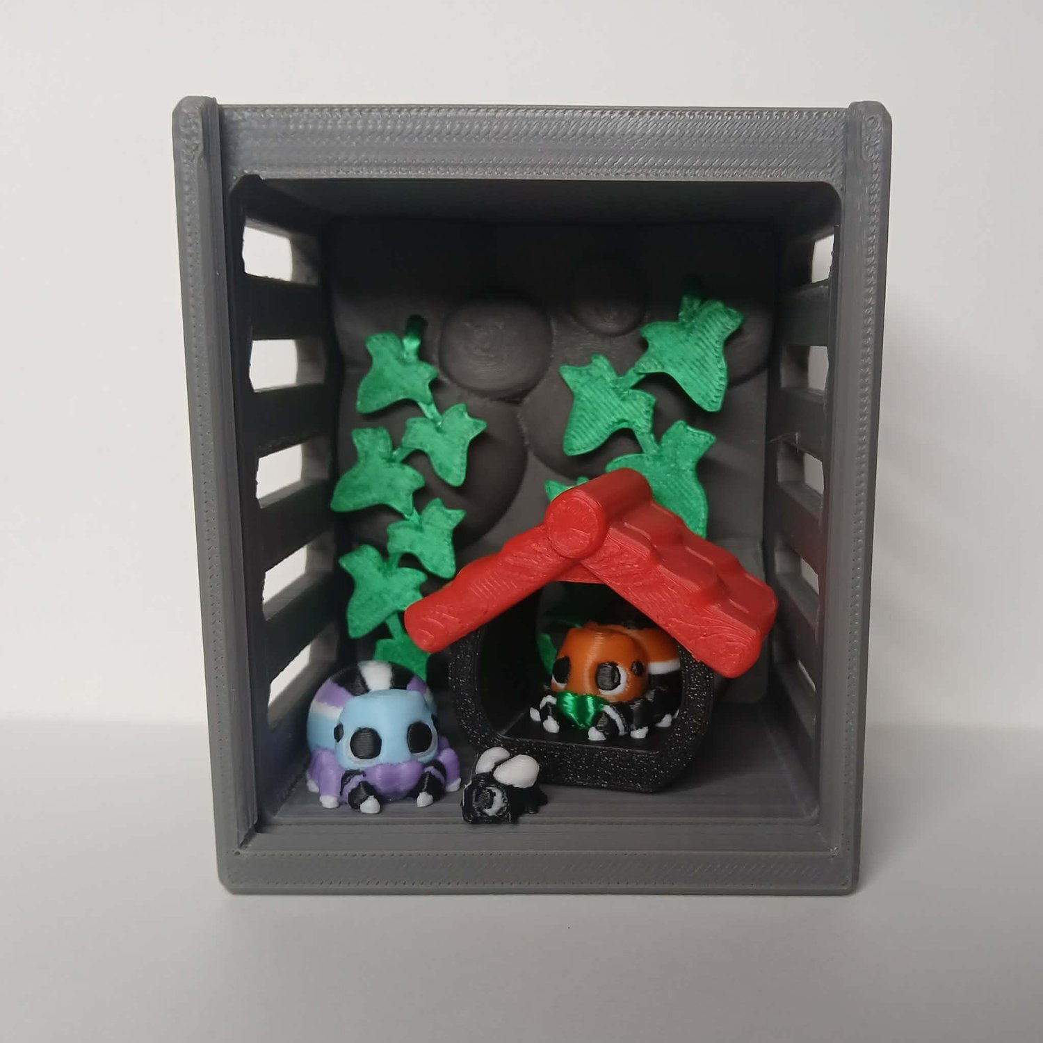 Includes 2 of the same color spider, 3 fly's, 1 base, 2 vines, 1 web door, 1 little house.