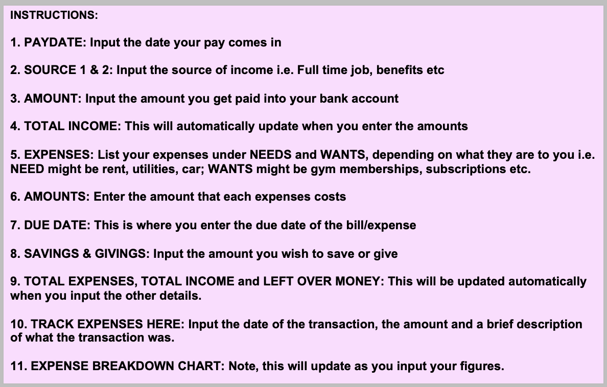 > Shows a graph of your planned expenses, categorised by need, wants and savings