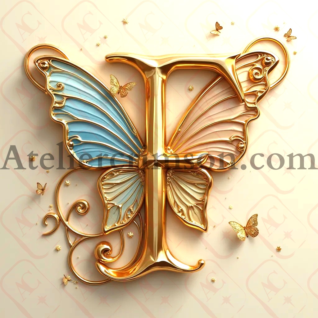 The letter F golden luxury butterfly