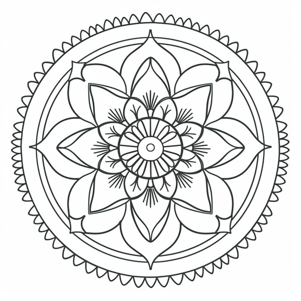 Find your inner calm with our intricate mandala design, perfect for a relaxing coloring session. Let your mind unwind and unleash your creativity as you add your own unique touch to this beautiful artwork.