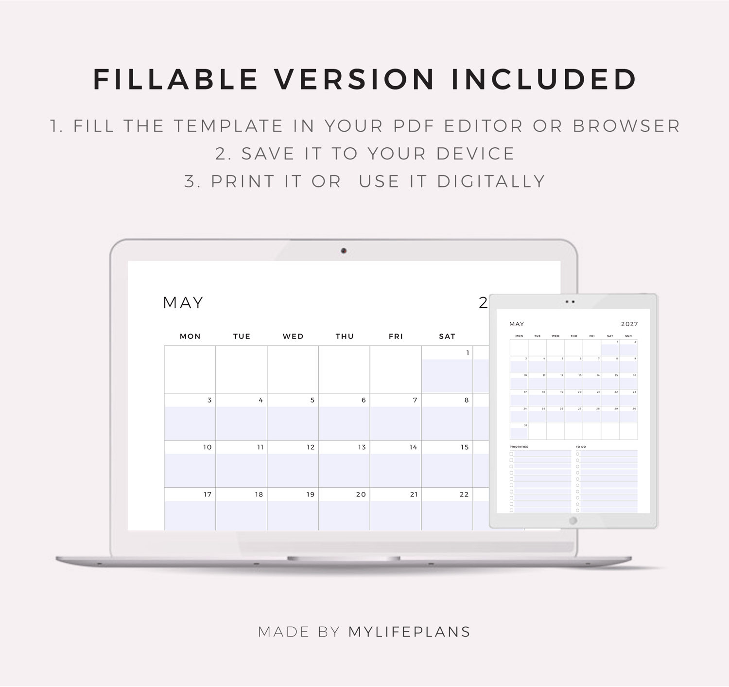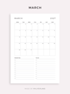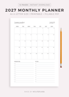 2027 Monthly Planner Printable & Fillable, A4/Letter Size