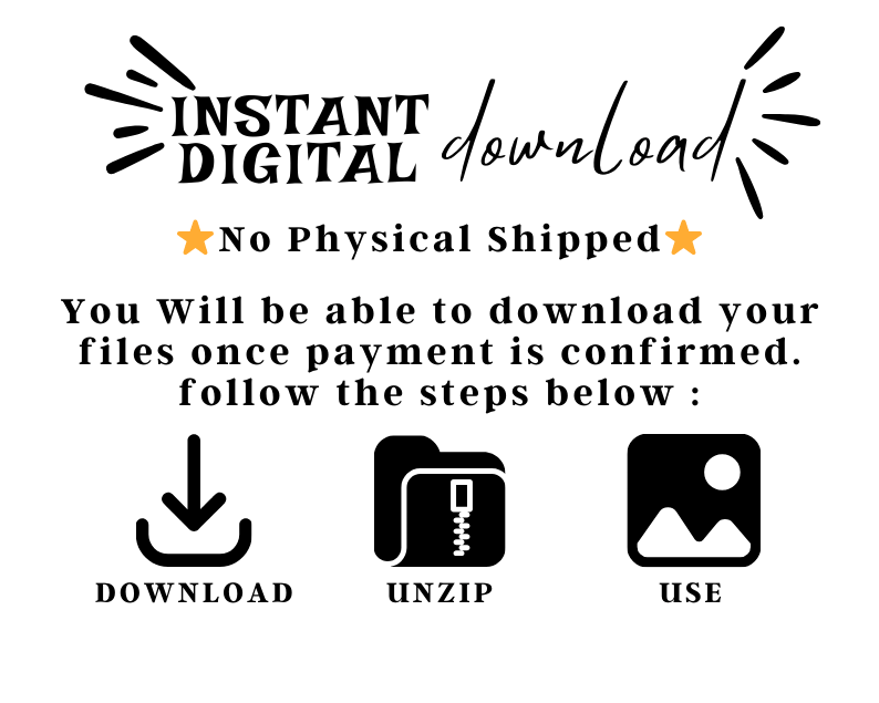 Digital Product Only: No physical product or printed material will be shipped. You will receive digital files only.