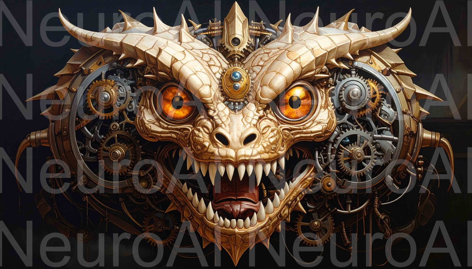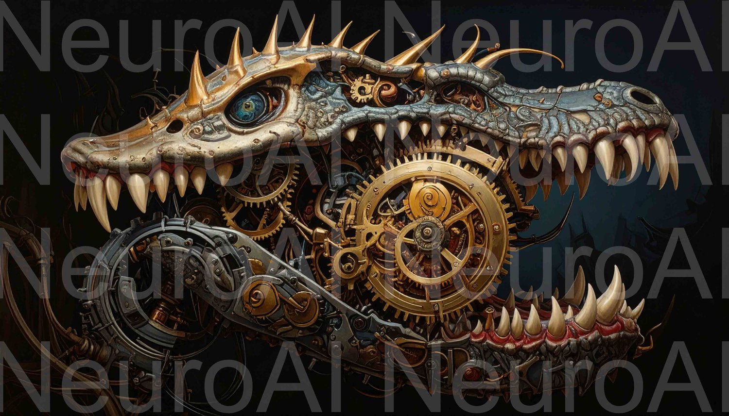 Steampunk dragon head with intricate gears and mechanical details