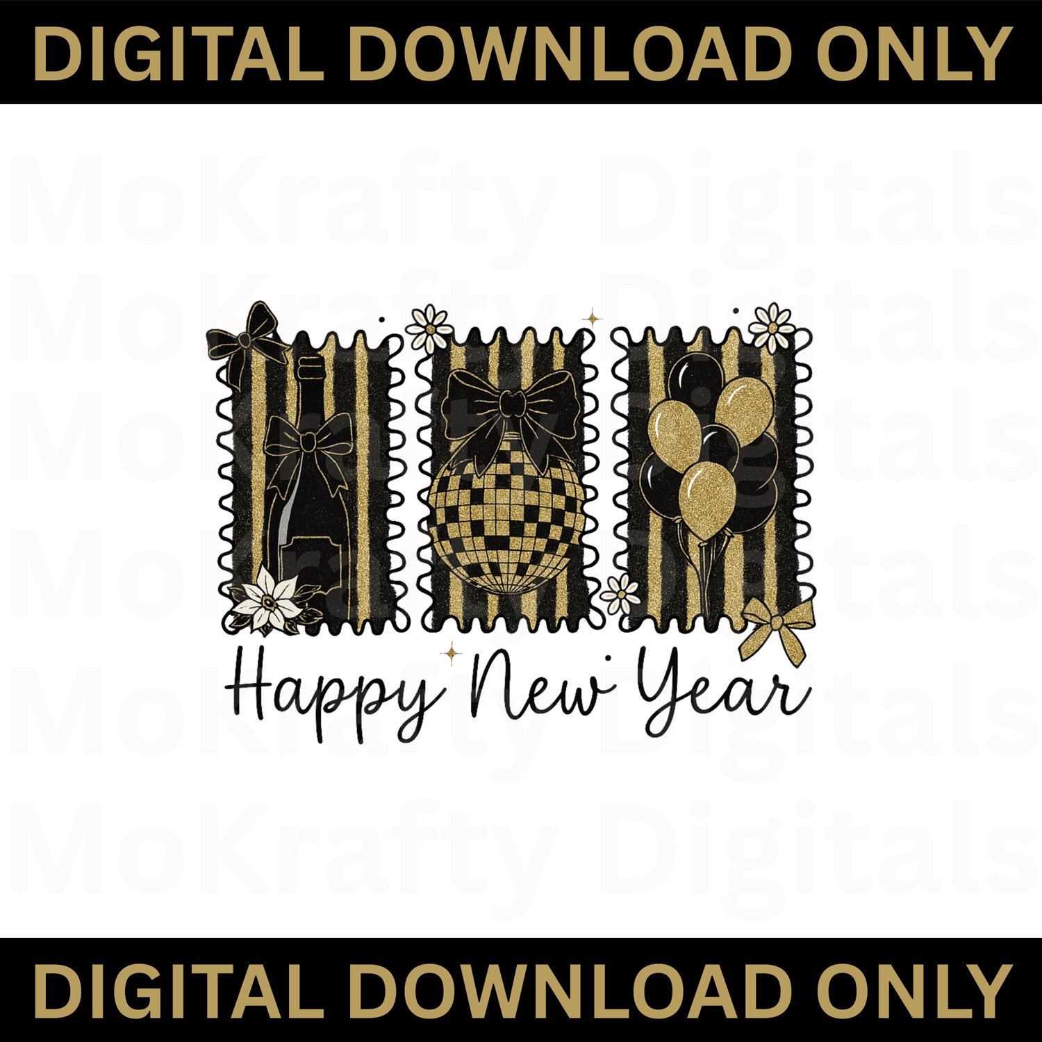 Happy New Year PNG | Gold Black New Years Design | Disco Ball Champagne PNG (Digital Download)