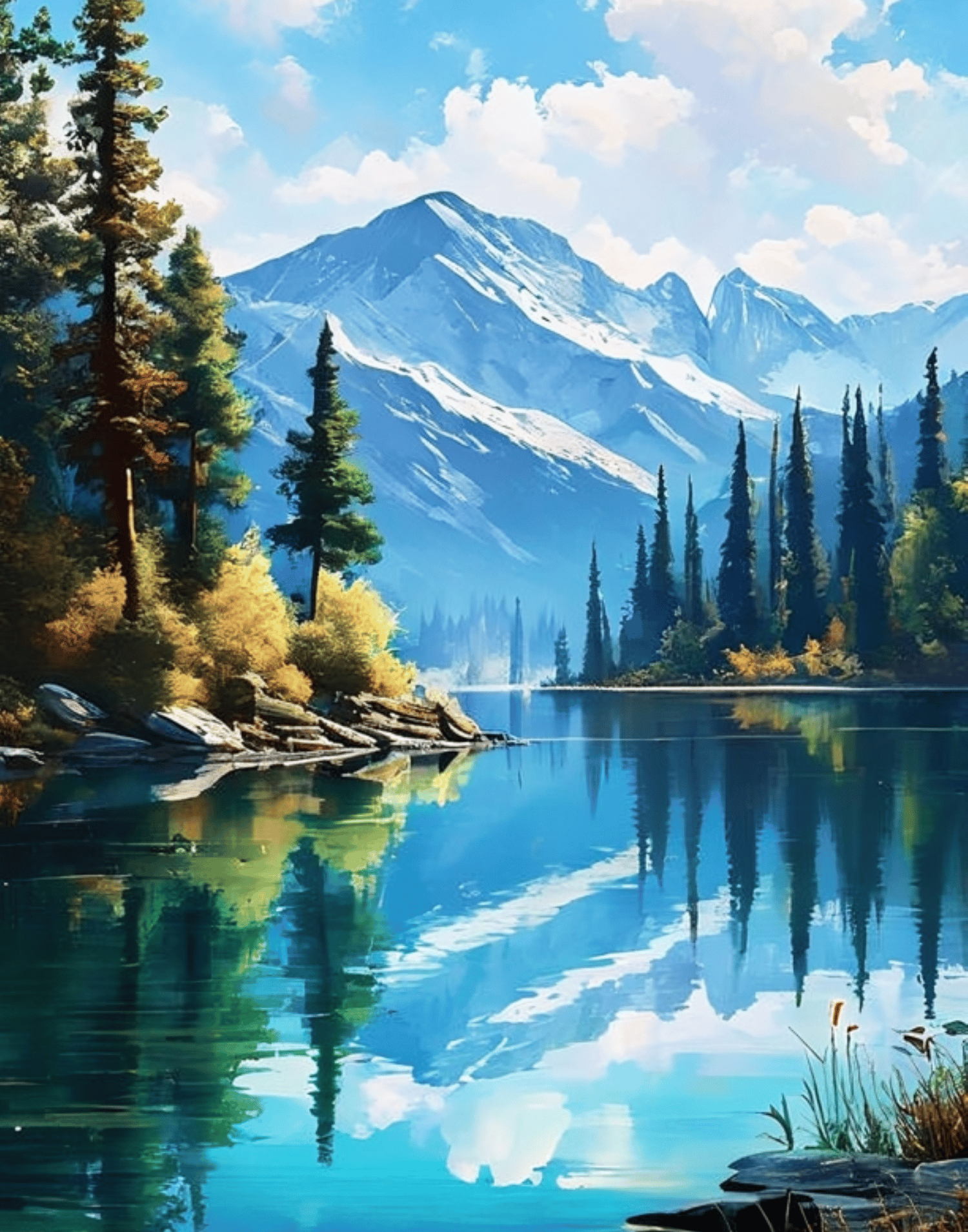 Vintage Mountain Lake Landscape, Serene Lake, Lake Painting, Nostalgic Nature, Cool Nature, Rustic natural Landscape, Painting.