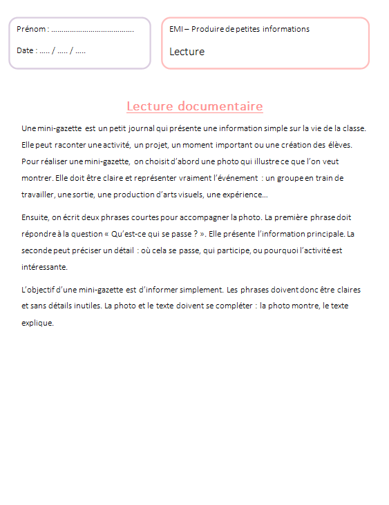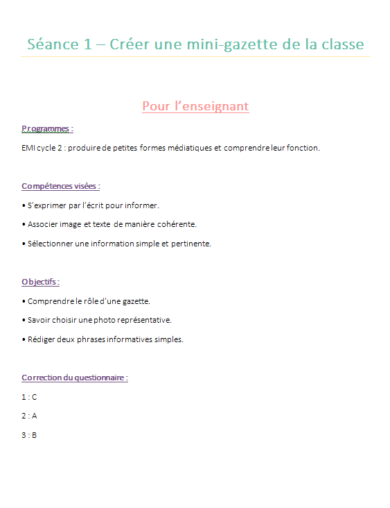 Cette sĂ©quence complĂšte de 5 sĂ©ances EMI pour le Cycle 2 aide vos Ă©lĂšves Ă apprendre Ă informer clairement et simplement, comme de âpetits journalistesâ de la classe.