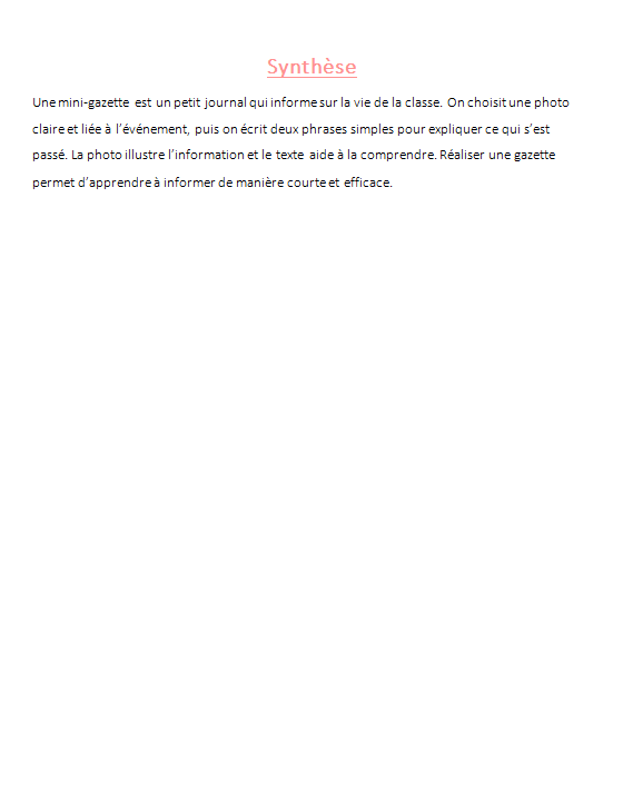 - Une synthÚse pour la trace écrite