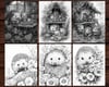 35 Cute Porcupines Animal Coloring Page Book, Adults + kids Instant Download Grayscale Coloring Page, Printable PDF, Feast, Family, Cute