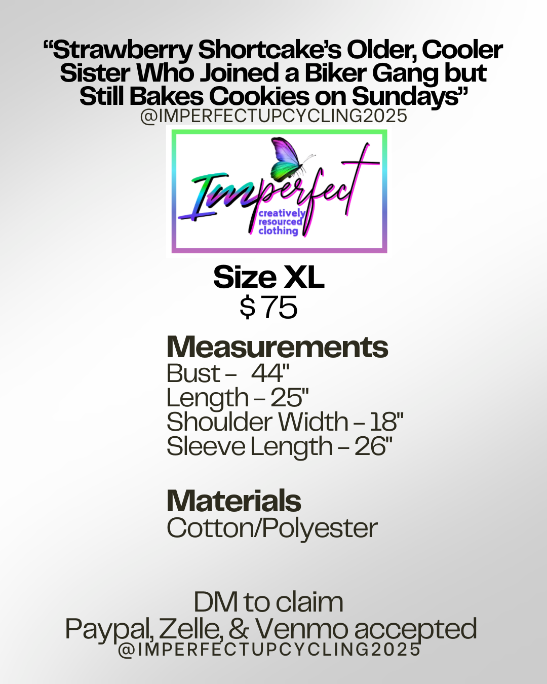 She rides hard, bakes soft, and never skips the fringe. Who didn't love Strawberry Shortcake as a little girl? This red lightweight jacket is sugar, spice, and full-throttle nice. White lace—perfect for anyone who’s sweet but absolutely not to be messed with.
