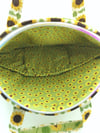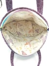 This Hoop-La Project Bag is designed to hold an embroidery hoop. It has a pocket inside to hold thread and other essentials.