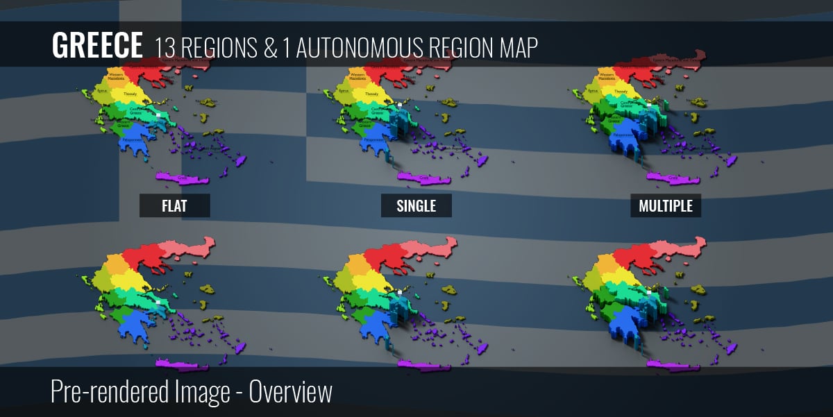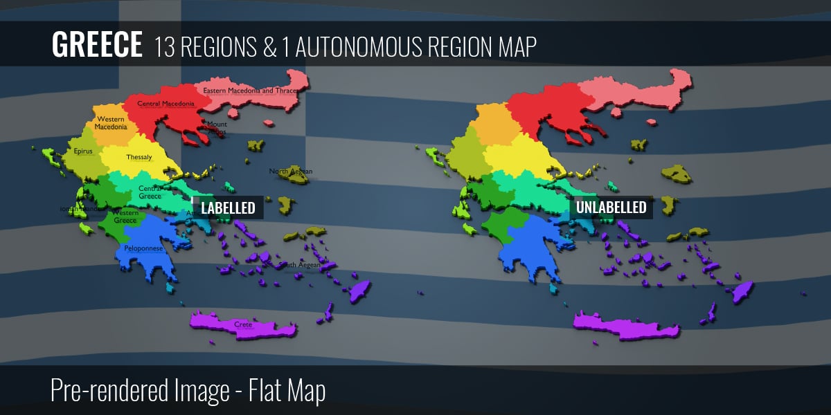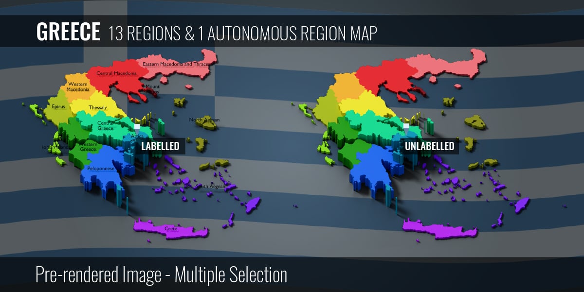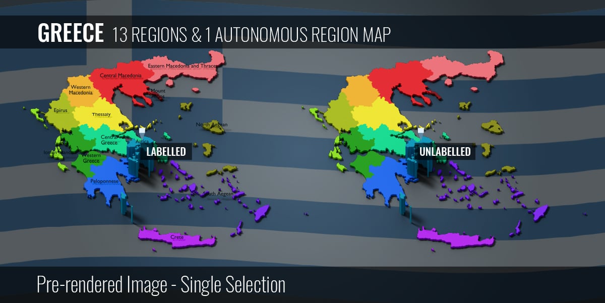 Greece 13 Regions & 1 Autonomous Region Map (3D + Pre-rendered Images)