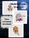 Skeleton Love Halloween Printable Wall Art set of three 8x8 instant downloads