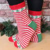 I LOVE Christmas socks and wear them as soon as I see the first Christmas decorations in the shops. These festive Jolly Holly Socks are made using aran weight sock yarn, making them perfect for cosying up by the fireside, wearing to lounge about, or for pottering around the house as you’re wrapping your Christmas presents. Being knitted in aran yarn means they also make quick last-minute gifts.
