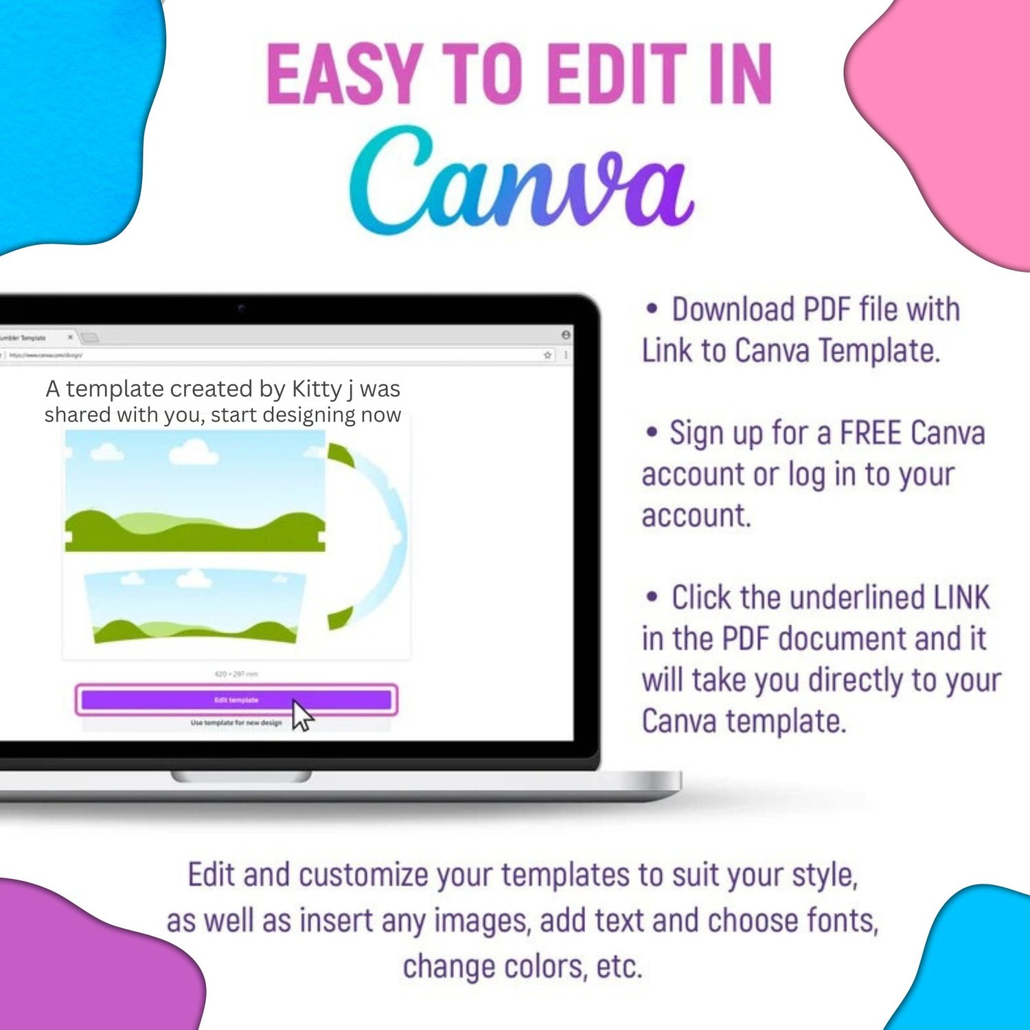 Simply open the template in Canva, customize with your own colors, text, and graphics, then print and assemble your personalized chocolate bar purse favors.