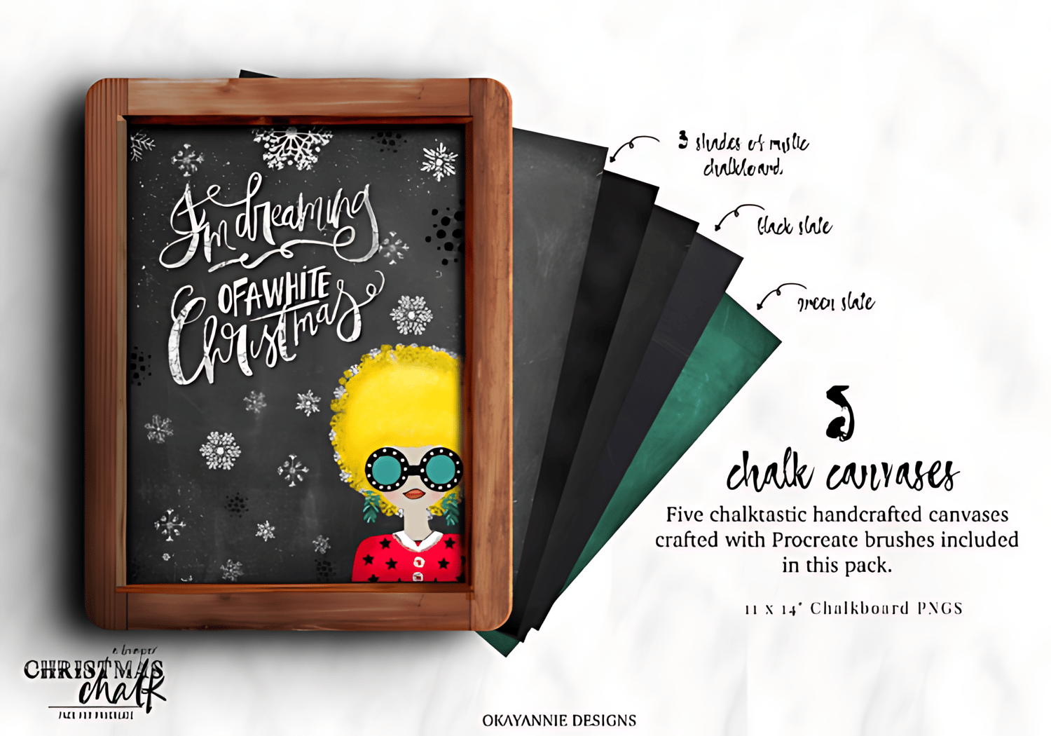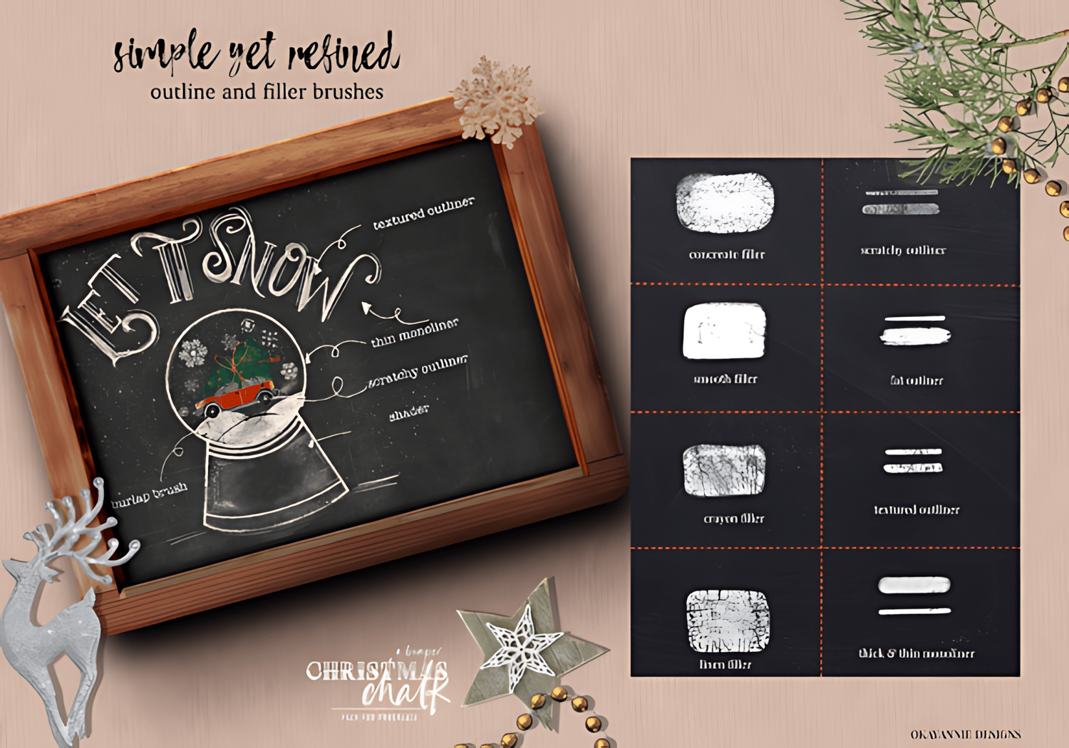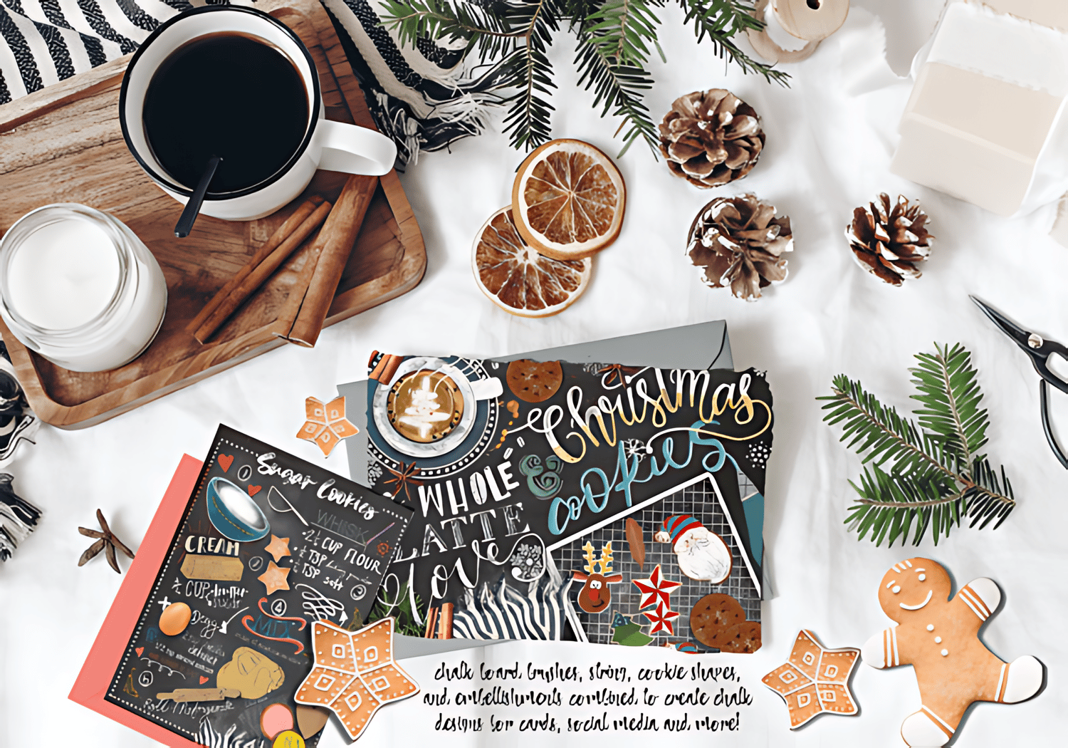 – Bonus Items: 2 Photo Frames, 5 Glitter Papers, 4 Christmas Photo frames in PNG & AI format, 5 Chalkboards