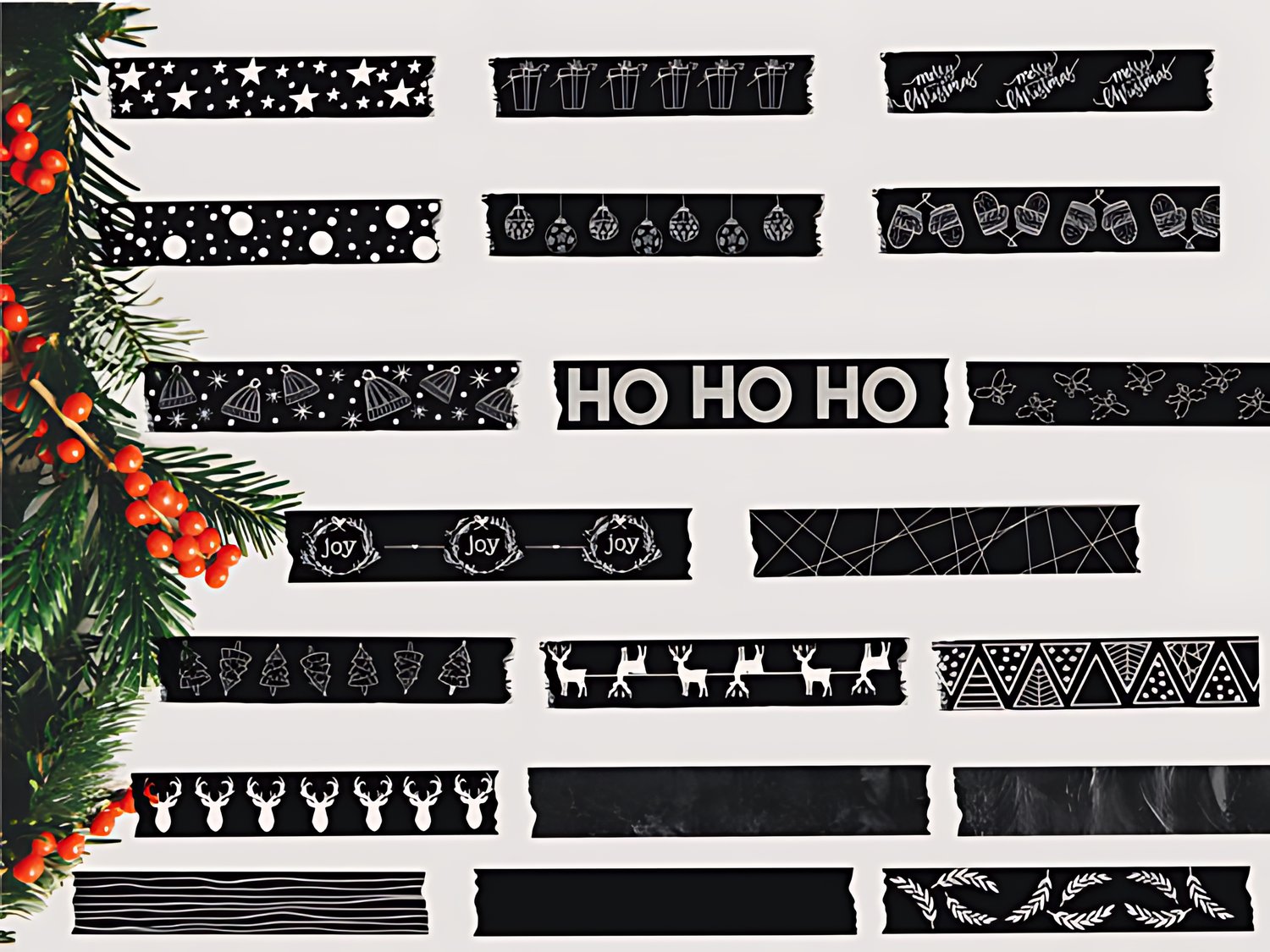 – Christmas Washi Tapes – 44 hand-drawn Christmas inspired washi tape brushes