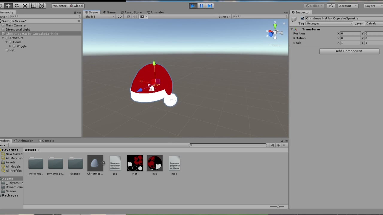 XMas Hat Unity scene and prefab with Dynamic Bone and material settings