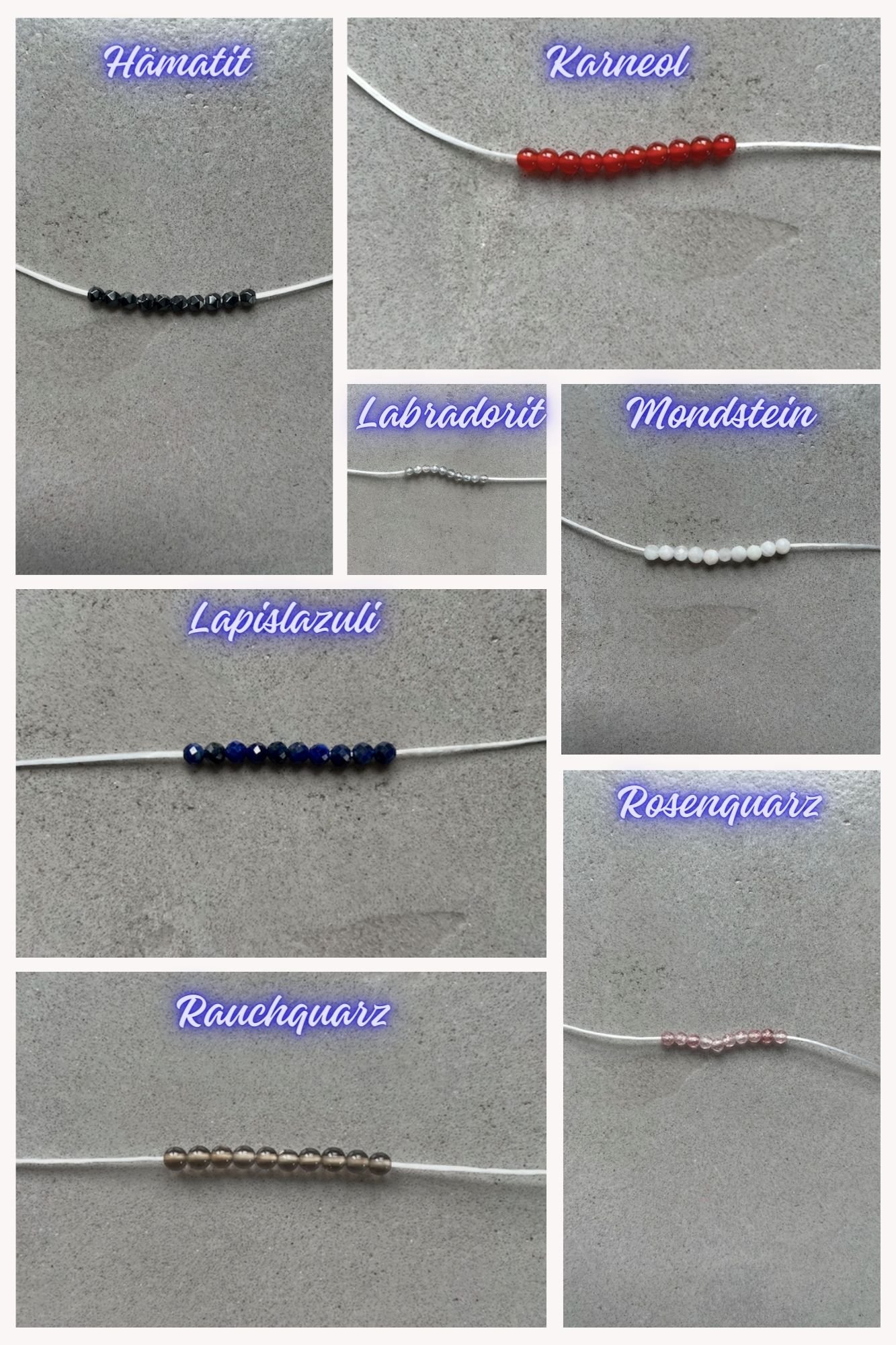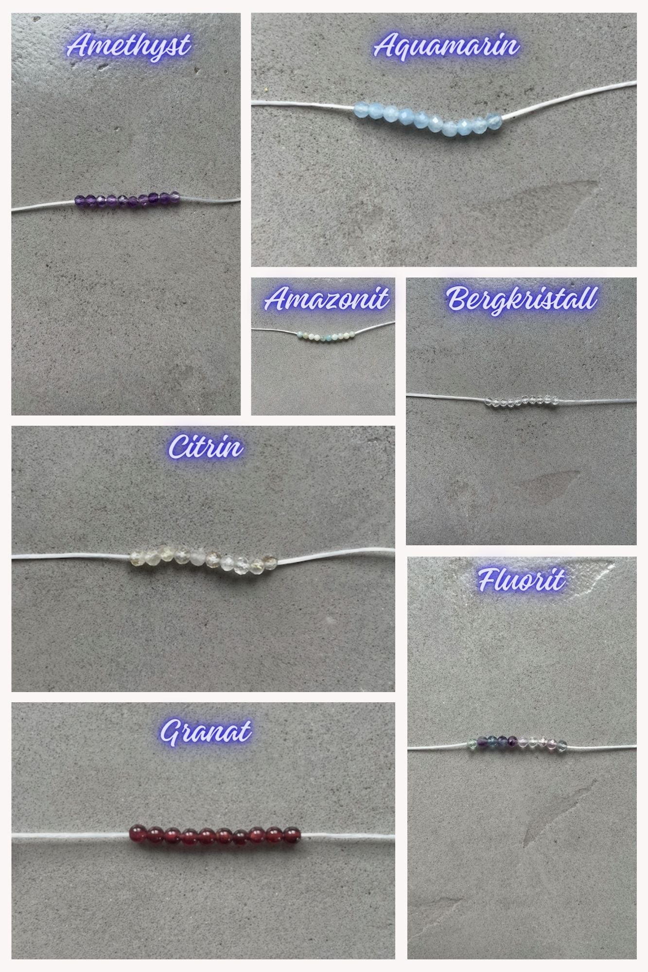 Hier kannst du dir ein Heilsteinschmuckstück aussuchen, welches nur eine Art von Steinen besitzt.