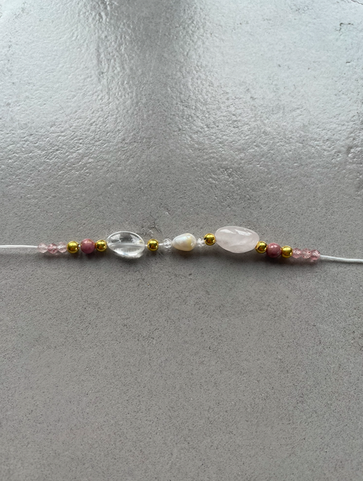 Bestandteile: Metalldraht, Metallverschluss (nickelfrei), Gummiband, Edelsteine (unten aufgeführt), Metallperlen (vergoldet oder versilbert)
