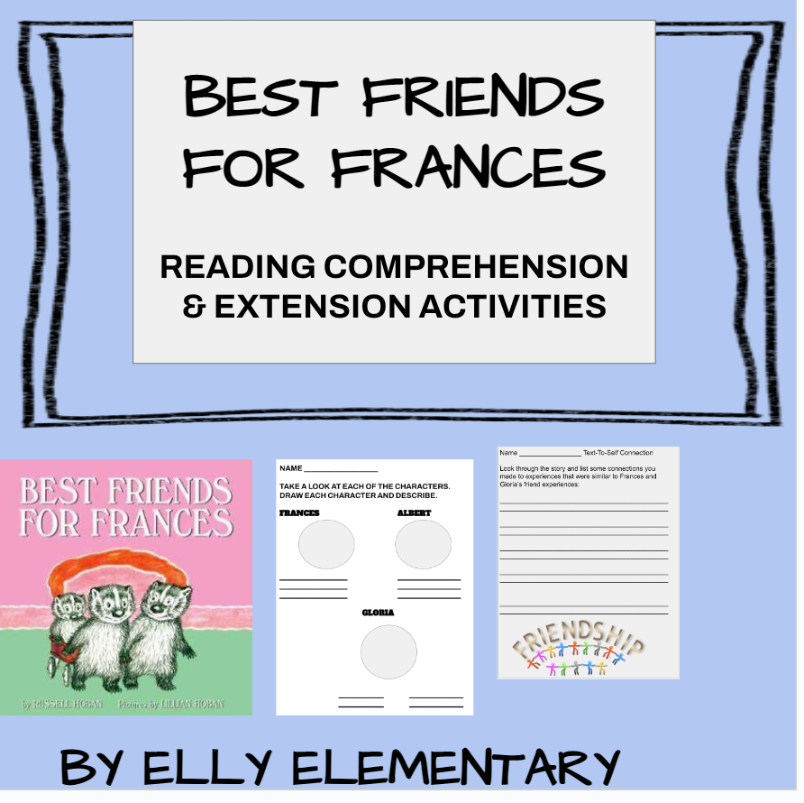 This 20-page ready-to-use ELA resources and activities unit is to be used with Best Friends for Frances by Russell Hoban. At the beginning of Best Friends for Frances, Frances and her younger sister Gloria have a rivalry. Gloria wants nothing more than to spend time and be friends with her big sister, but Frances wants to be friends with Albert.