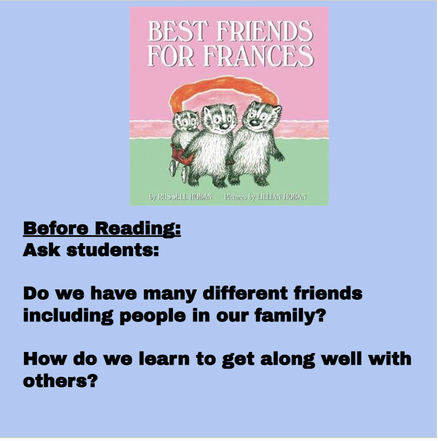 BEST FRIENDS FOR FRANCES By Russell Hoban: READING LESSONS & ACTIVITIES UNIT