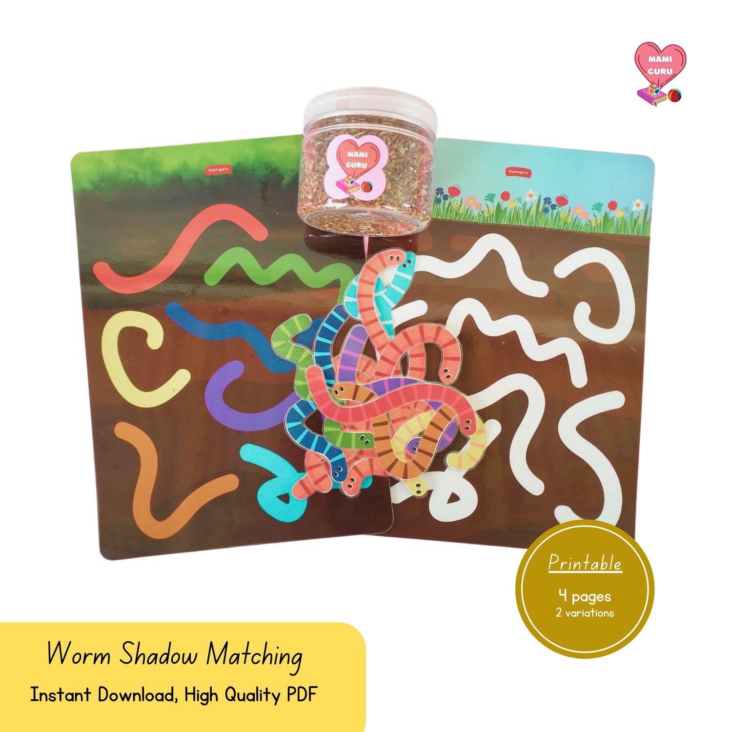 Worm Shadow Matching Printable – Visual Discrimination Game for Preschool & Toddler | Fine Motor & Color Activity