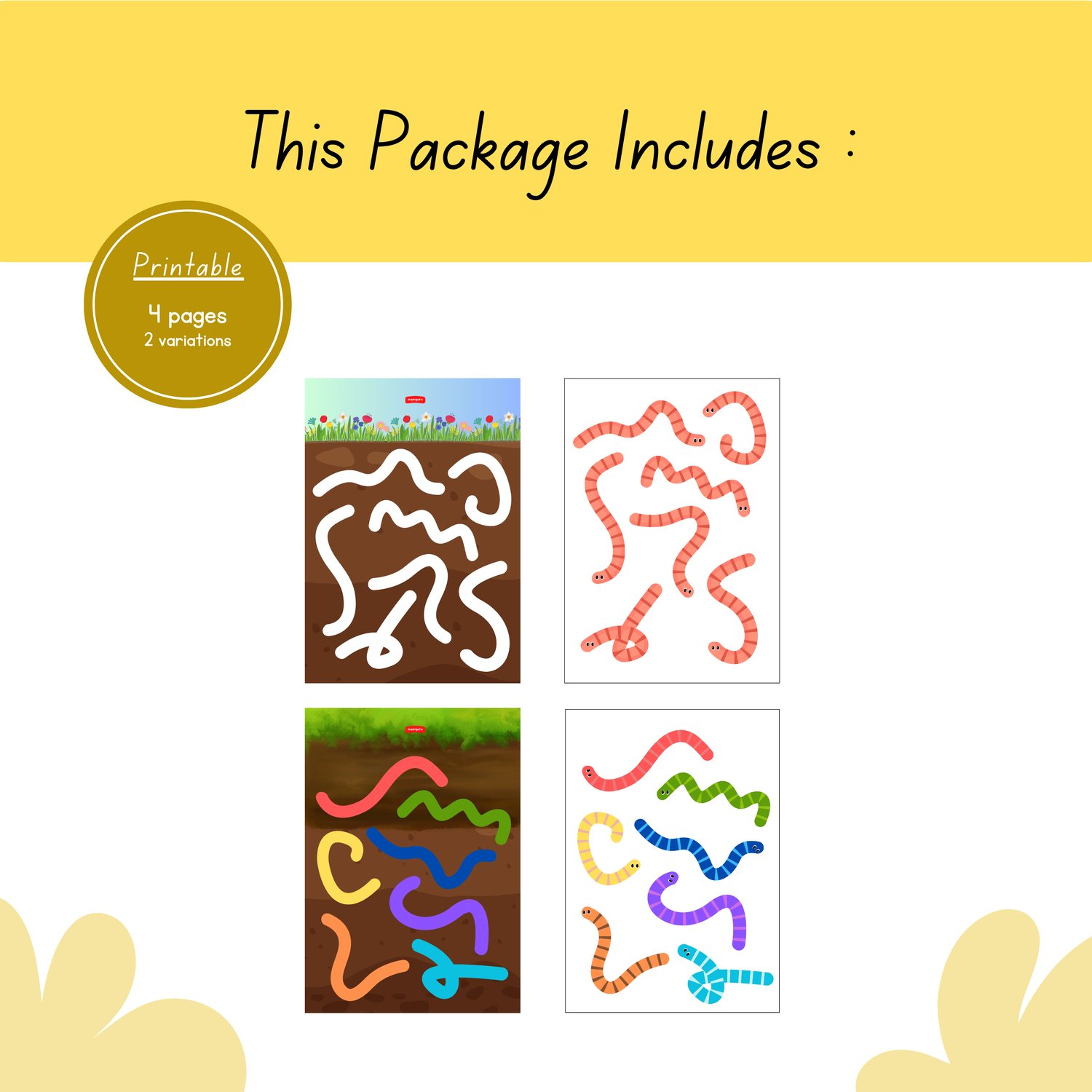 - Find a worm and match it to the shadow that has the same shape and color pattern.