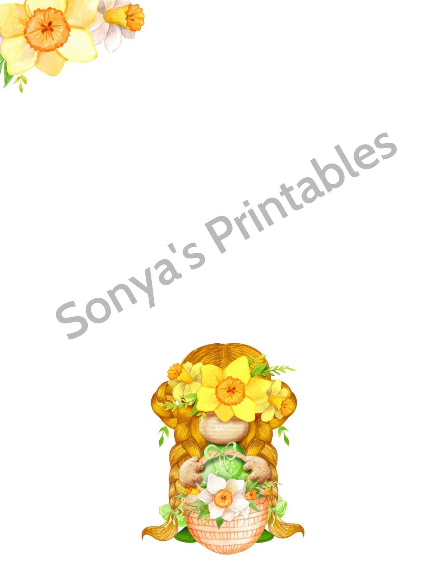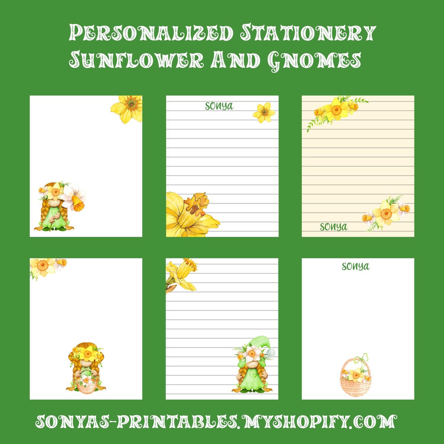 Personalized Gnome And Daffodil Stationery | Personalized Gnome Note Papers | Personalized Spring Penpal Paper