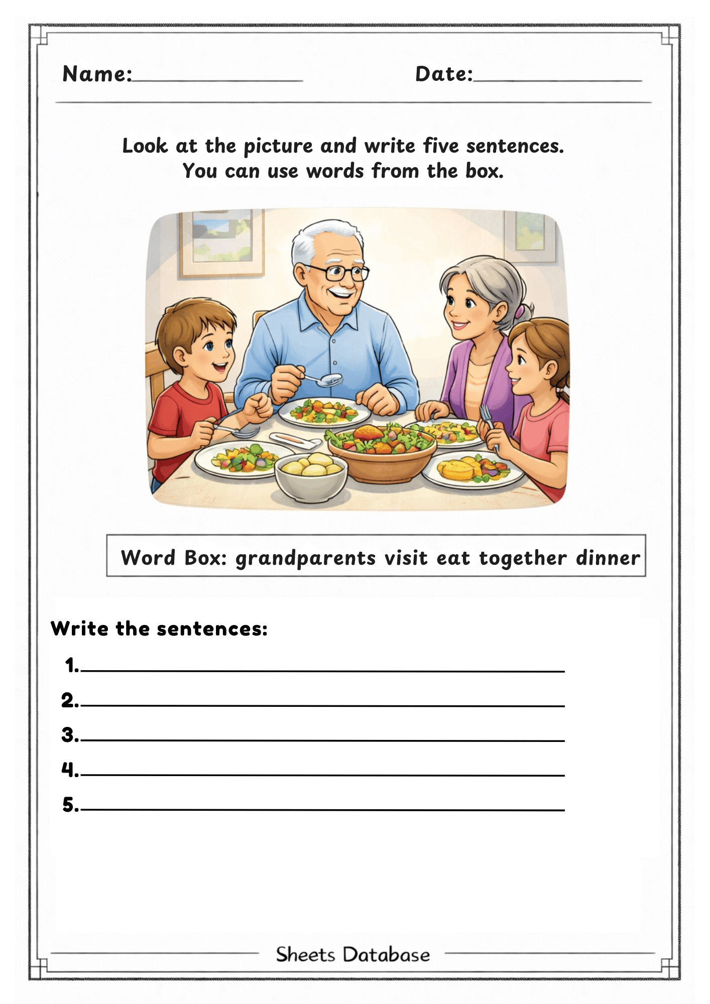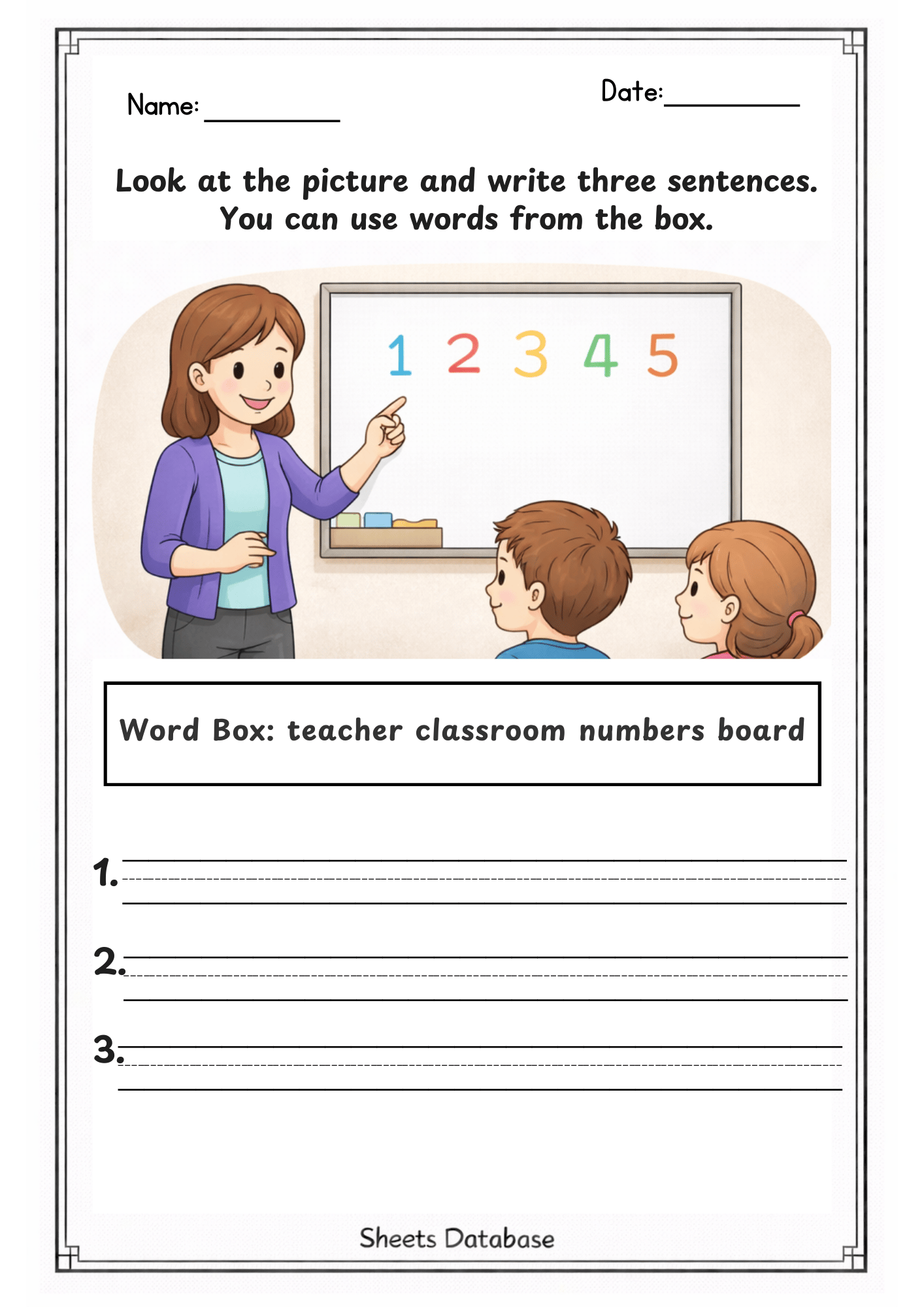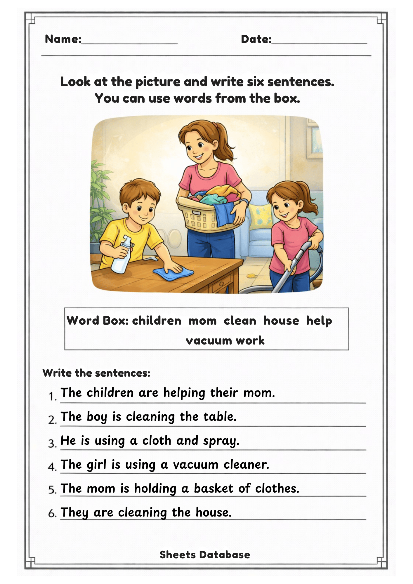 Students carefully look at each picture and write sentences describing what they see. These worksheets encourage creativity, vocabulary development, and clear sentence structure.