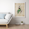 Vintage Bird Illustration - Green Parakeet with Orchid Flowers