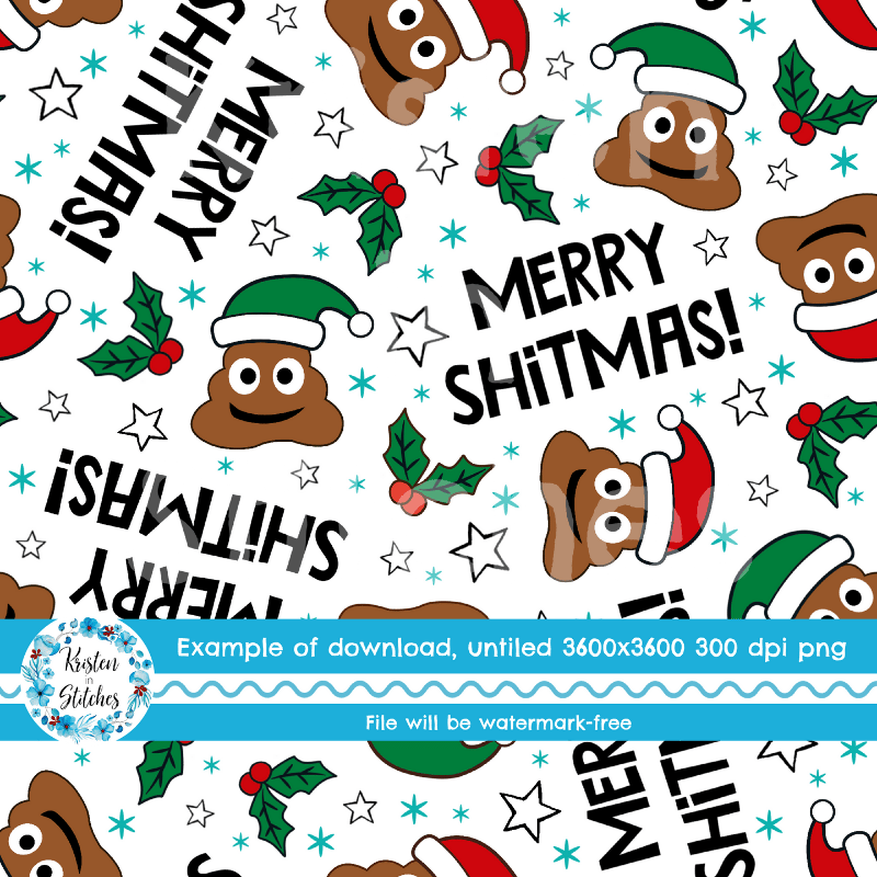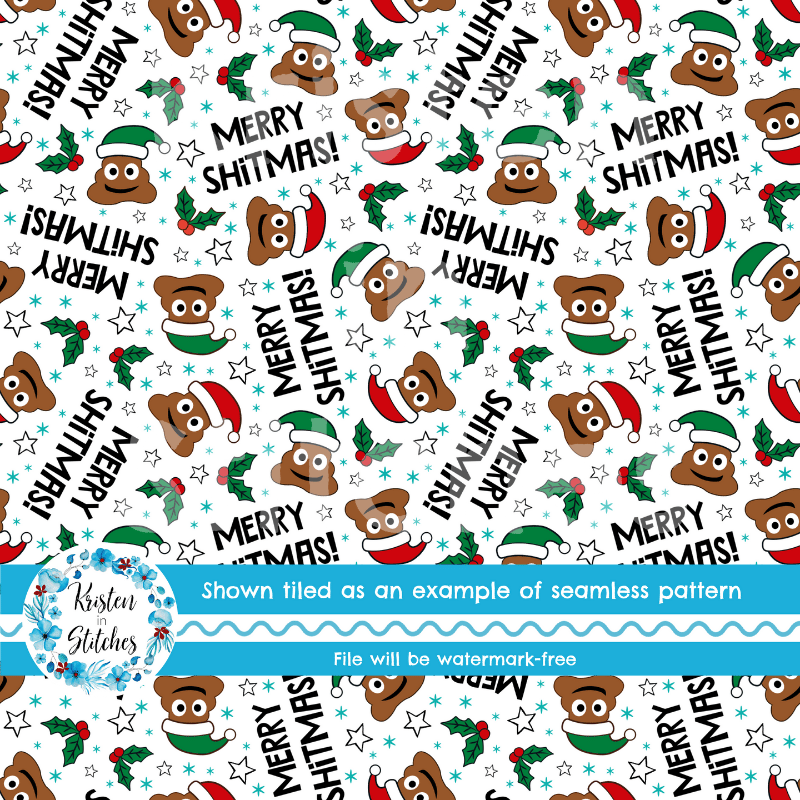 Merry Shitmas Christmas Poop Emojis Santa Hats Sarcastic Christmas Seamless Pattern