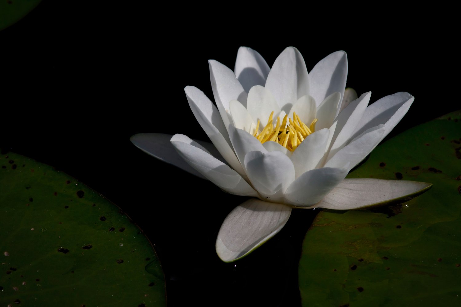 Beautiful White Waterlily (Nymphaea alba) blooms on the lake.