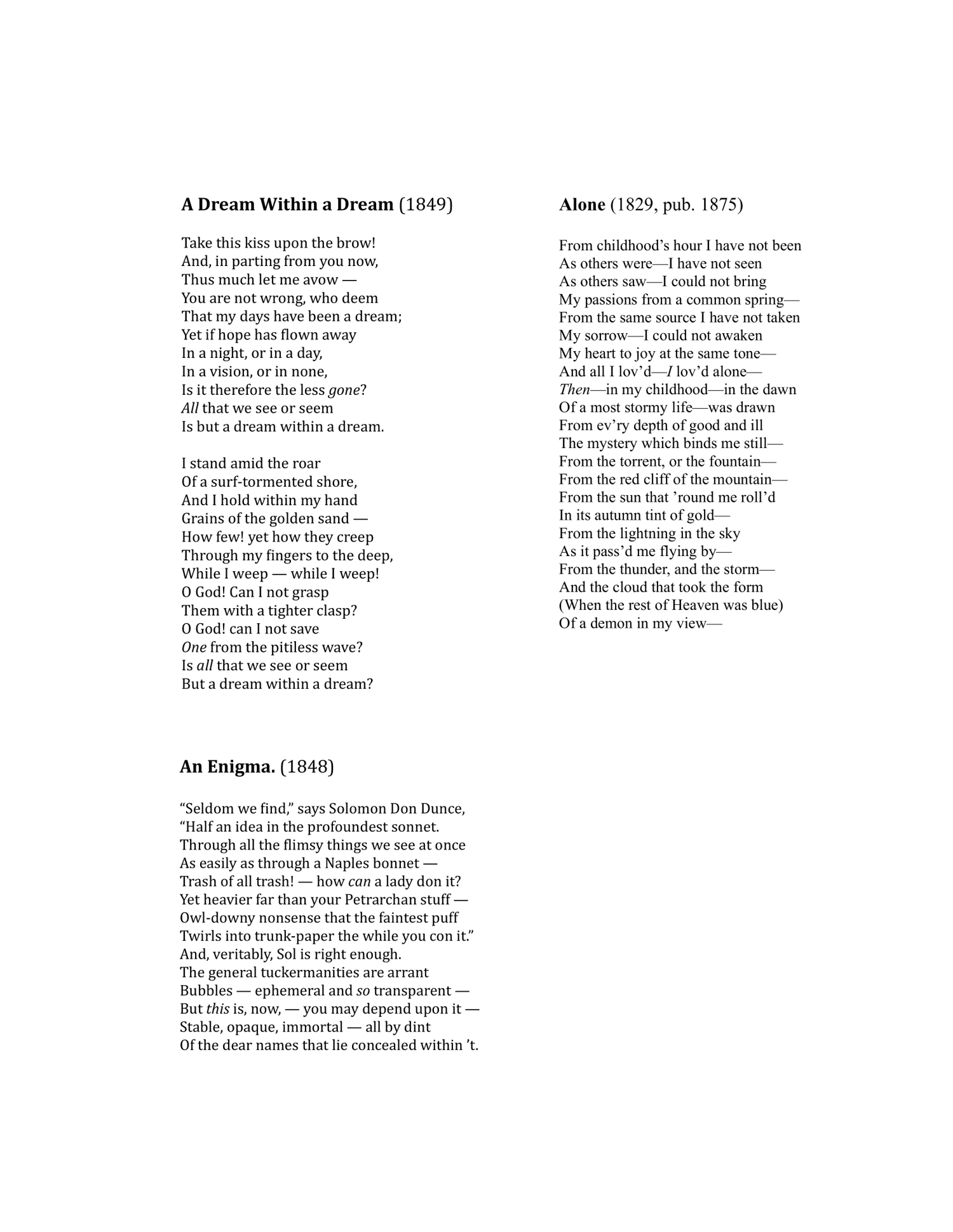Virginia’s tuberculosis in 1842 led to Poe’s decline. Moving to New York, he published The Raven (1845), reaching peak fame but suffering stress and illness. Excluded from high society, he wrote An Enigma, mocking literary pretension. In 1849, A Dream Within a Dream captured his existential despair.