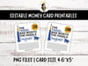 ❸ Print (best on cardstock paper) → Cut → Hole punch → Roll money & adhere plastic money pouch to card
