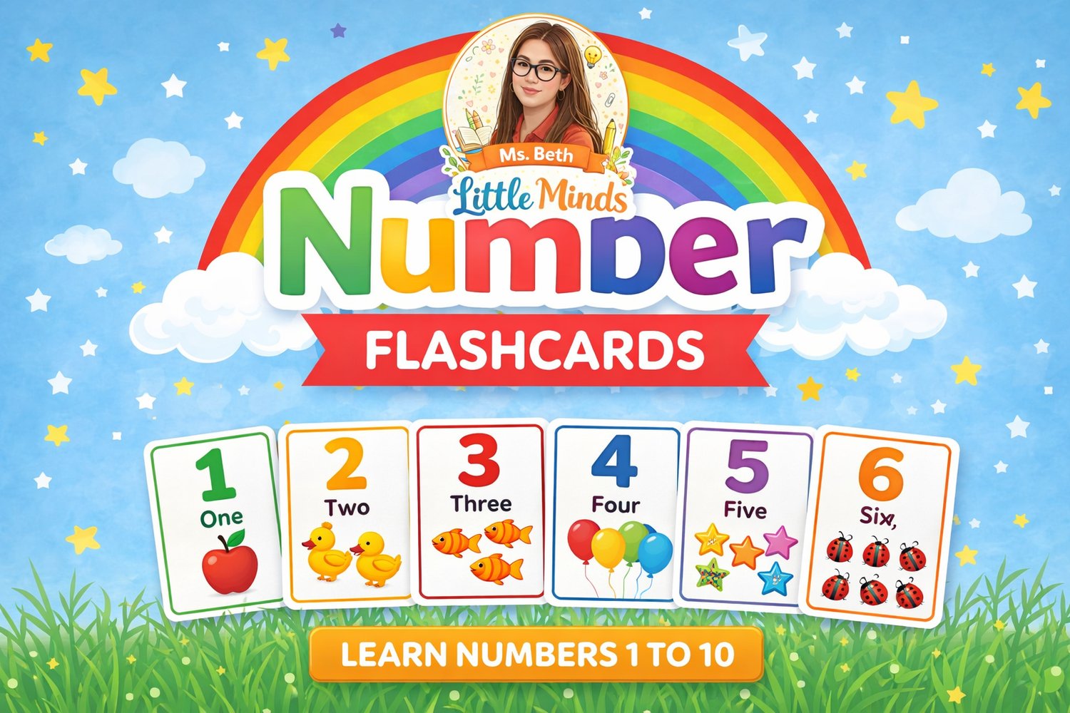 Help little learners build strong early math skills with this beautiful Number Flashcards 1–10 printable set by Ms. Beth Little Minds Learning and Printables.