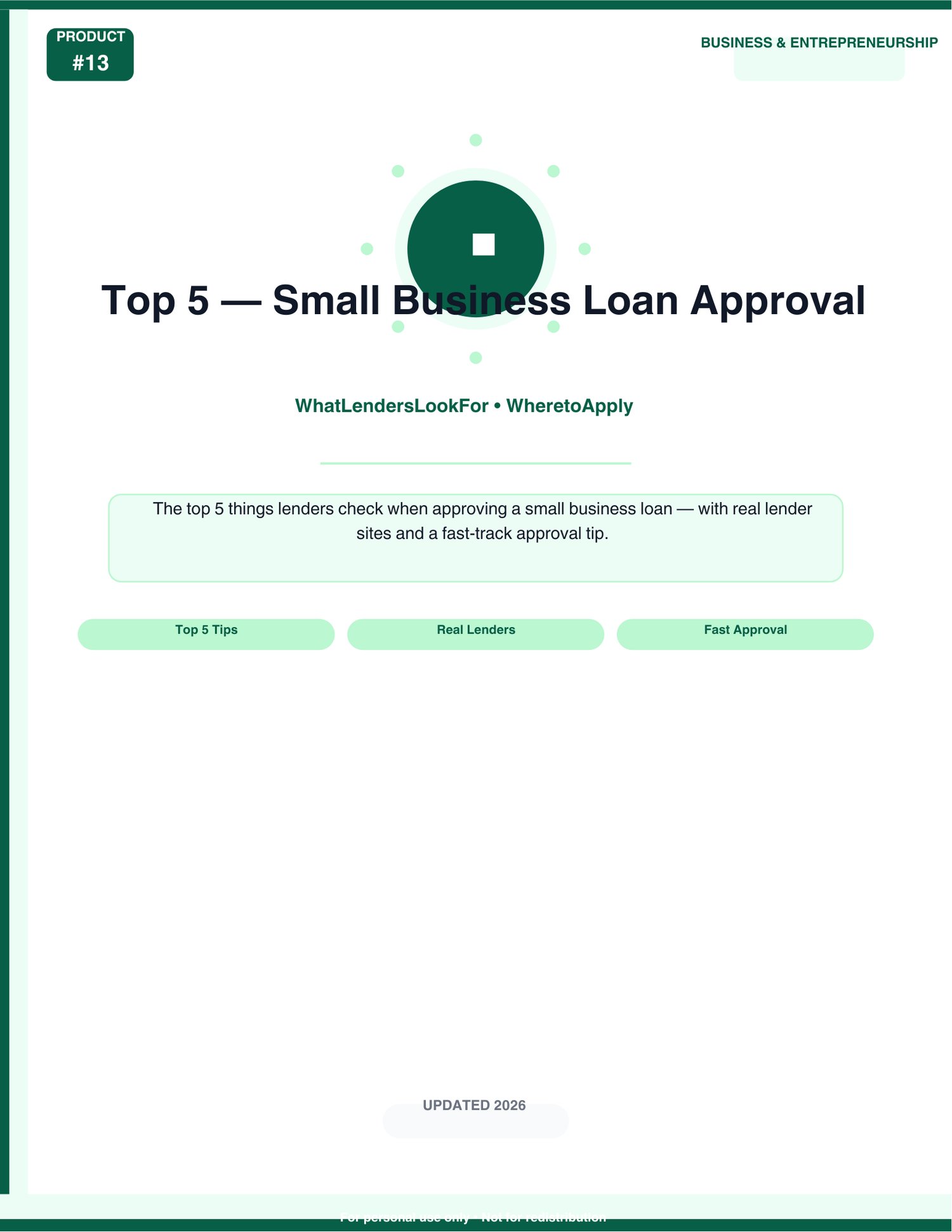 Getting a small business loan approved feels complicated — but lenders are really only looking for 5 specific things. This one-page quick reference guide breaks down exactly what they check, what documents to have ready, and where to apply right now.
