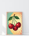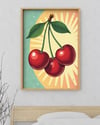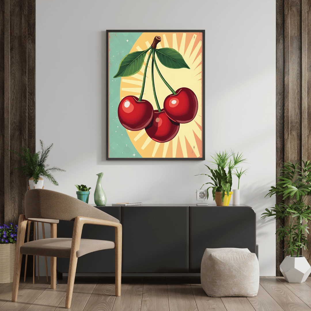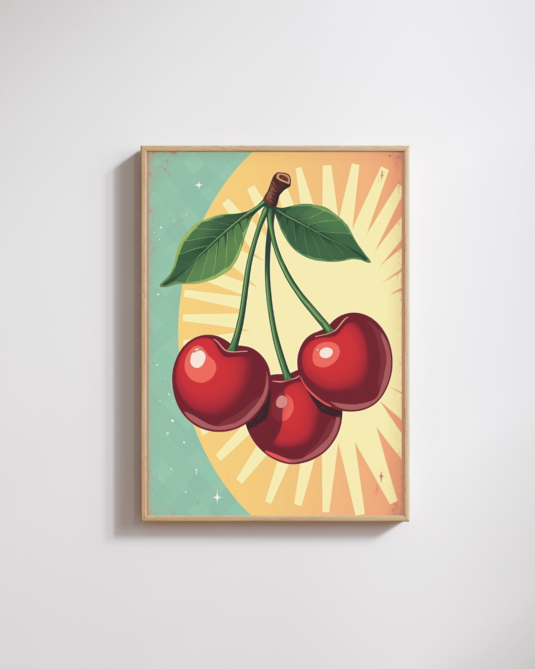 Bring bold retro charm to your kitchen or home with this 1950s-inspired cherry wall art! This printable digital download features juicy red cherries with mid-century sunburst flair, perfect for vintage lovers and MCM style fans. High-resolution 300 DPI, ready to print and frame. Great for kitchens, cafรฉs, or gallery walls! ๐โจ