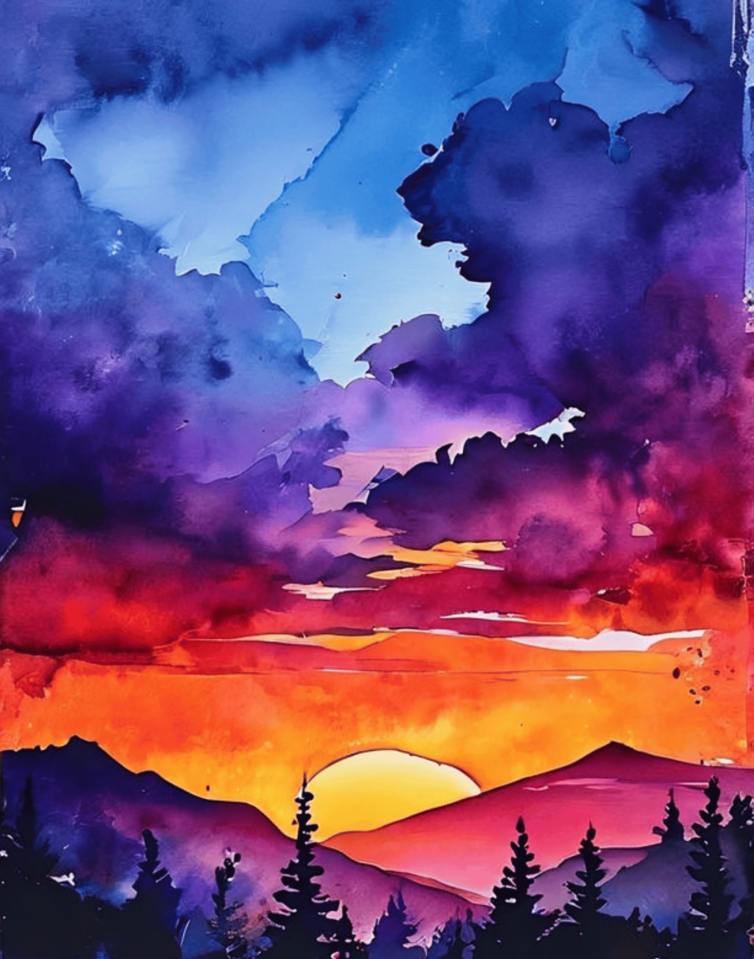 Vintage Sunset, Dusk Painting, Vintage Landscape, Nostalgic Nature, Cool Nature, Rustic natural Landscape, Painting.