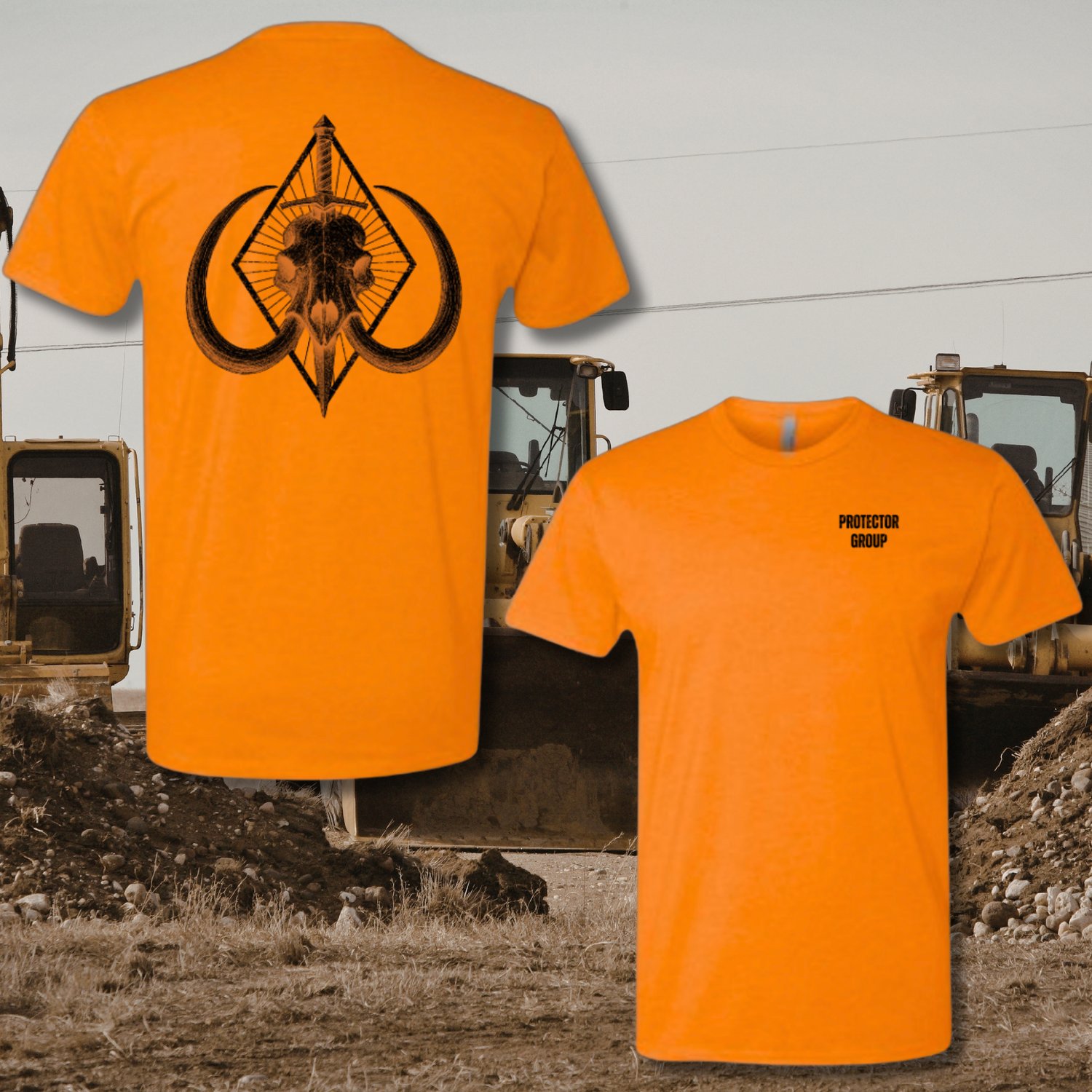 The Protector Group Mammoth 'Safety Orange' T-Shirt represents the core of Protector Group...fathers, protectors, and hardworking men who take responsibility for their families and the world around them.